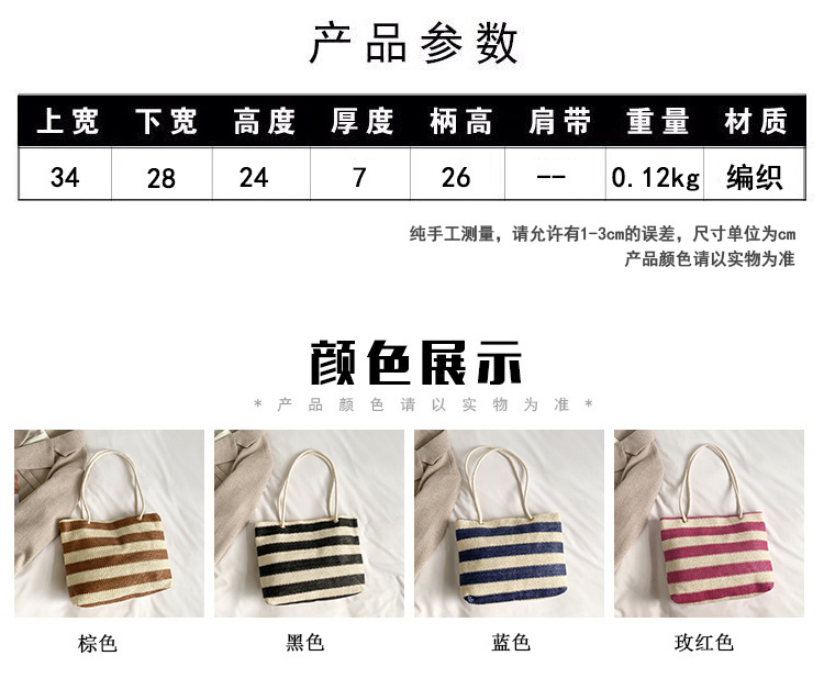 2023女士单肩包大容量简约手提购物袋时尚洋气编织条纹沙滩休闲包 投诉