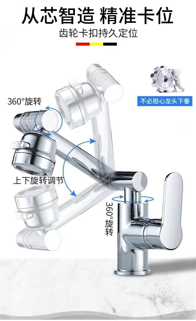 龙头不带管,可上下调节高度,自由旋转,角度随您定,洗脸洗头都很方便,从芯智造,精准卡位,轻松一转,自由改变清洗方向,增压冲洗不溅水。可承接OEM贴牌打标。批量订购可联系客服洽谈。