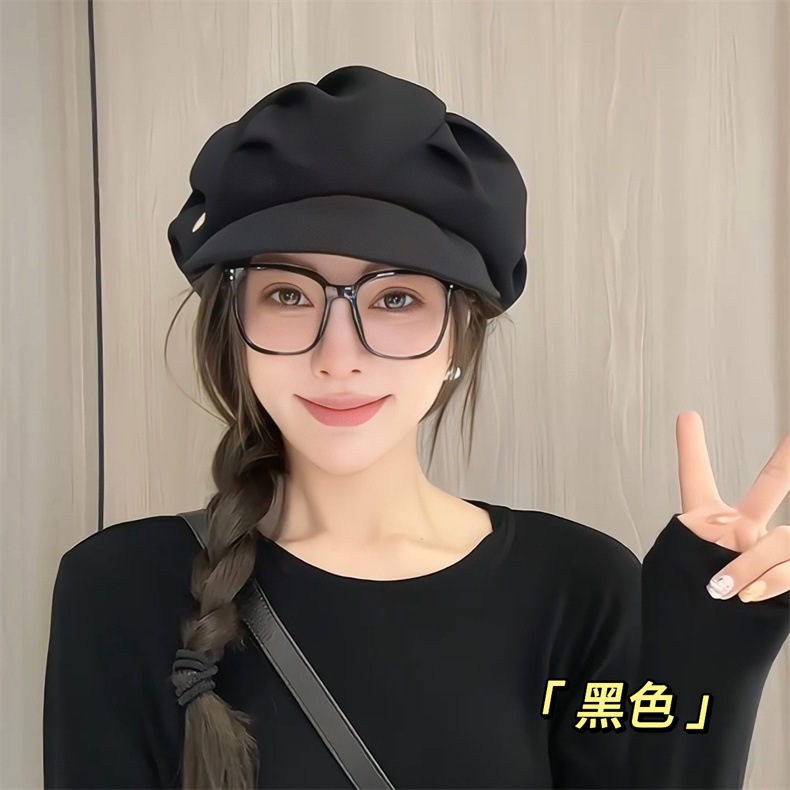云朵帽子女褶皱包脸显脸小八角帽出游日常休闲韩版素颜短檐贝雷帽