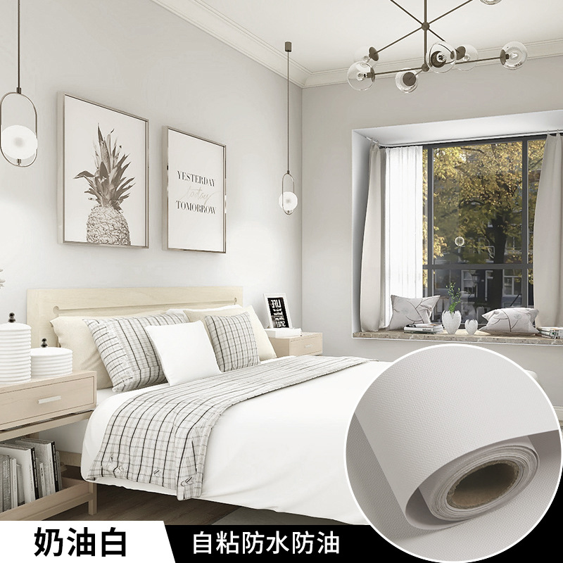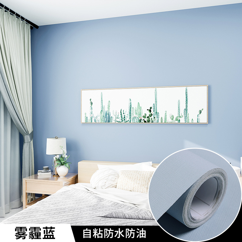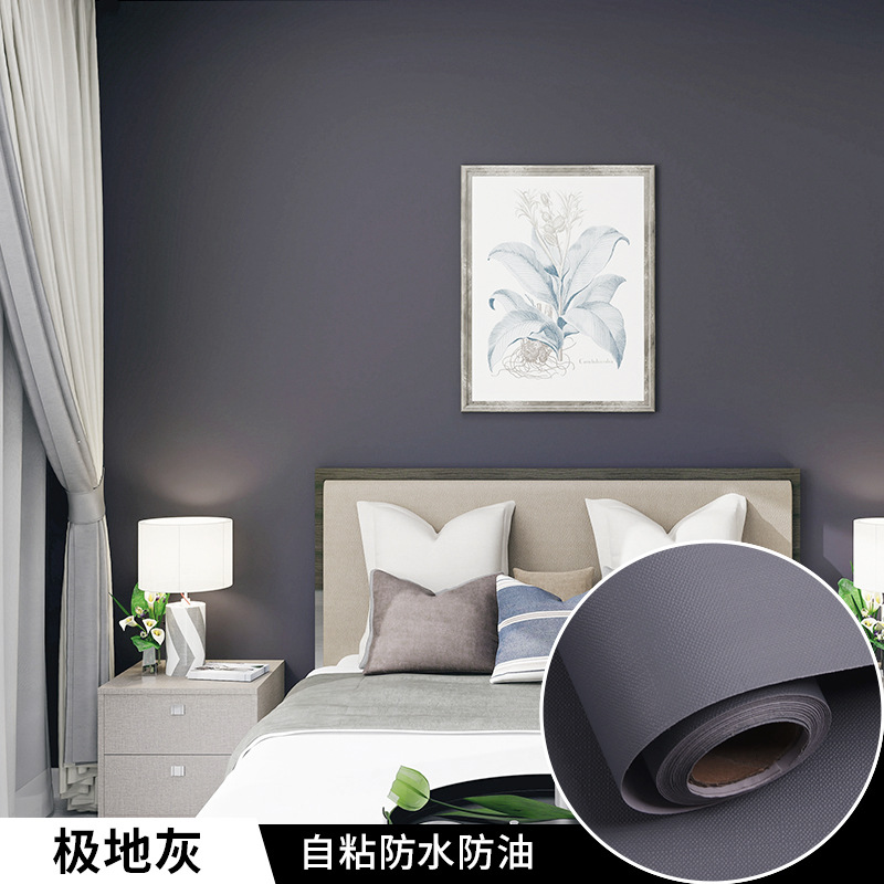 纯色墙纸自粘莫兰迪色防水防潮客厅卧室宿舍寝室自带胶壁纸批发