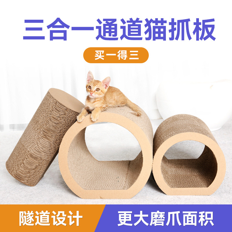 跨境爆款瓦楞纸猫抓板隧道磨爪神器环保瓦楞纸猫爬架猫咪解闷蹭毛 English | 投诉