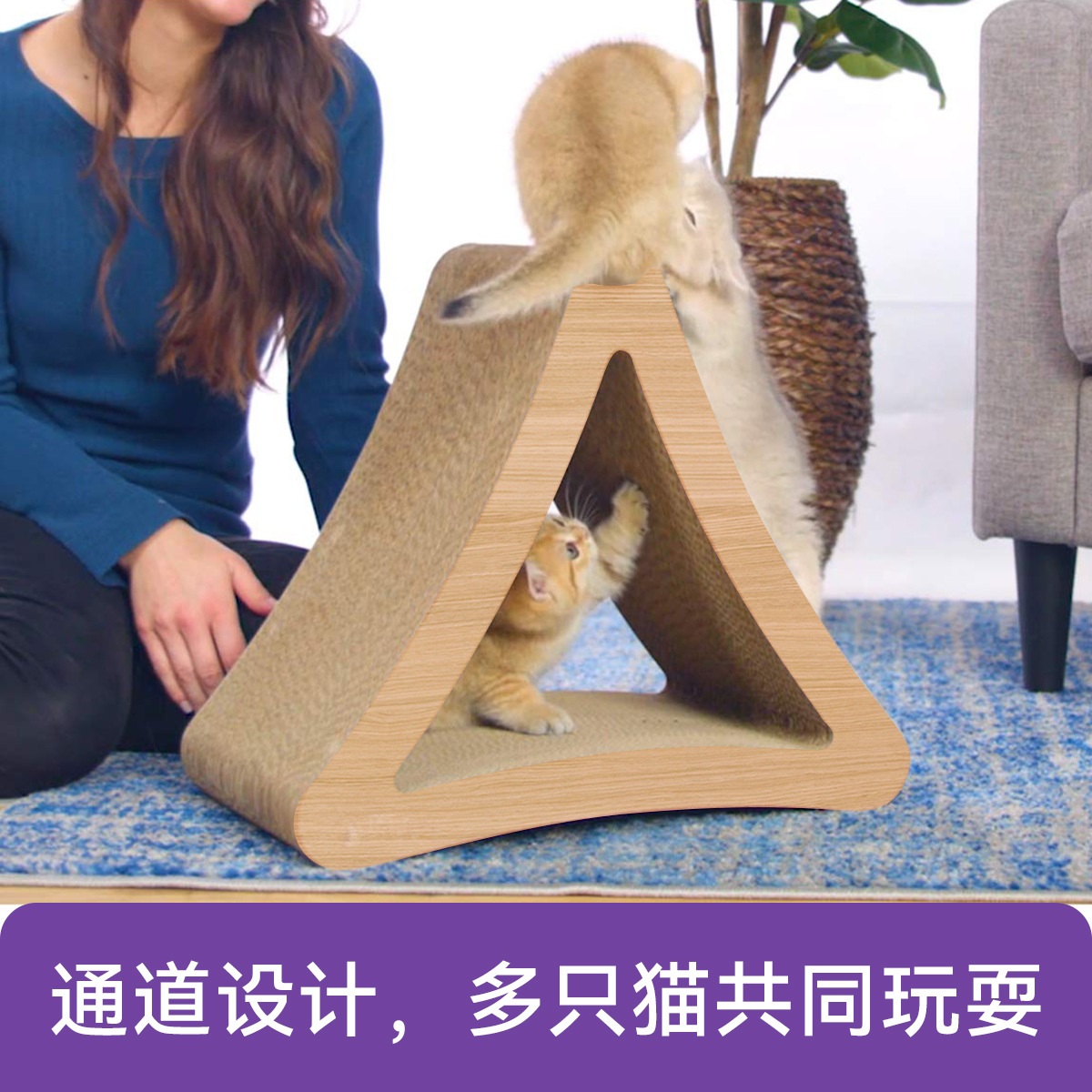 跨境爆款瓦楞纸三角形猫抓后刮板纸板猫抓环保瓦楞纸猫抓柱猫爬架 English | 投诉