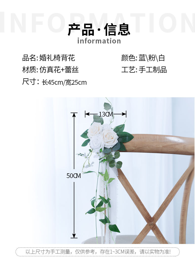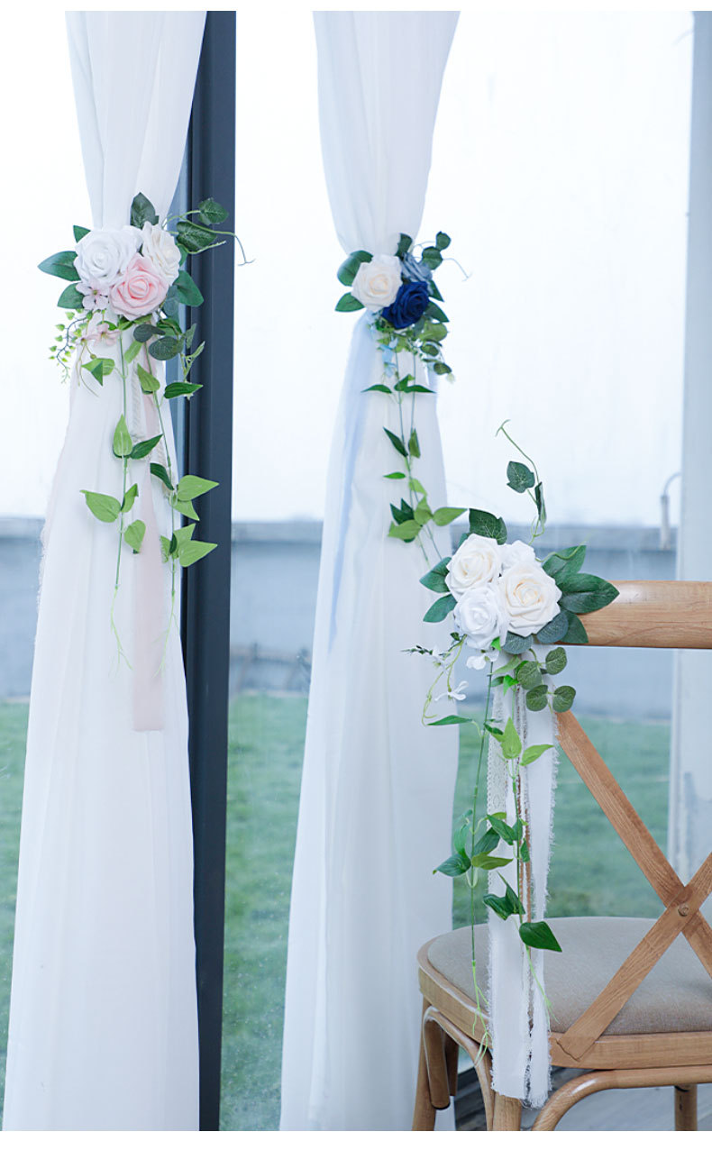 婚礼布置椅背花结婚走廊过道装饰假花家居窗花跨境婚品椅背花批发 投诉