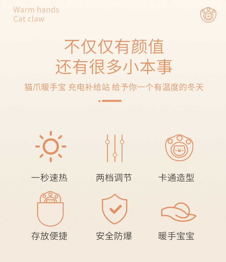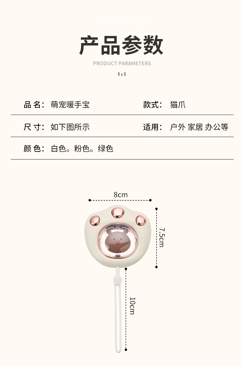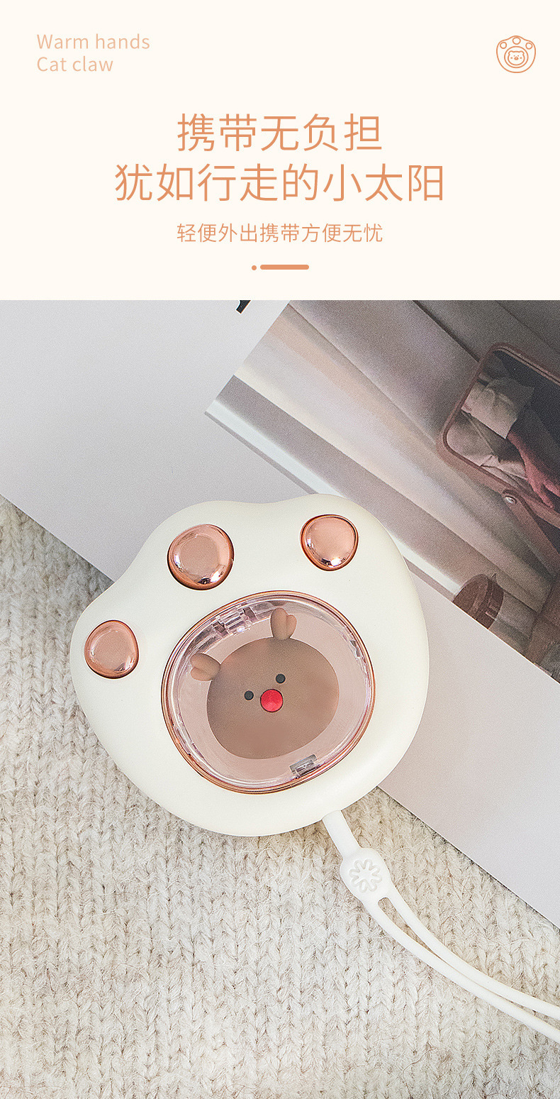 冬季新款便携防爆迷你萌宠暖宝宝usb充电猫爪暖手宝卡通可爱礼品 投诉