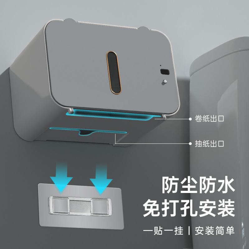 2023新款壁挂式智能感应自动出纸机卫生间免打孔抽纸盒厕所纸巾盒