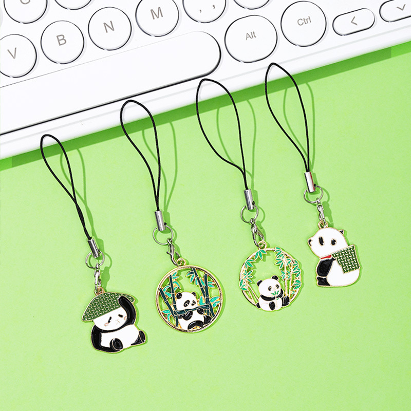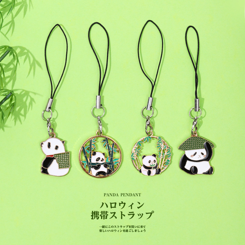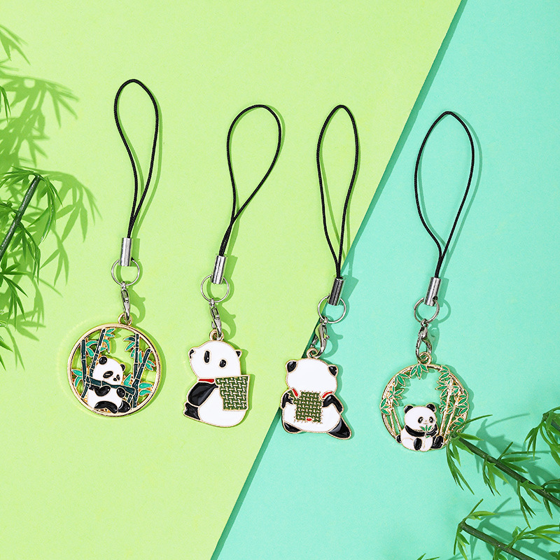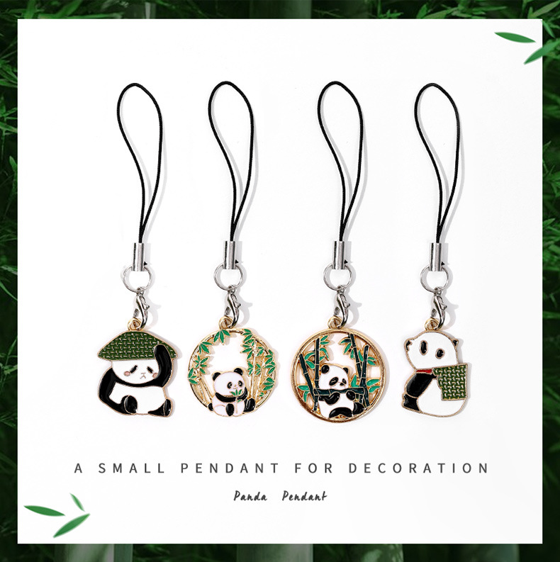 可爱熊猫竹子竹叶 diy合金滴油饰品配件国风发饰钥匙扣挂 件吊坠
