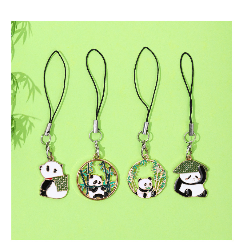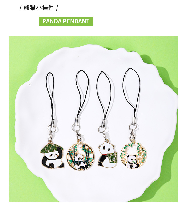 可爱熊猫竹子竹叶 diy合金滴油饰品配件国风发饰钥匙扣挂 件吊坠 投诉