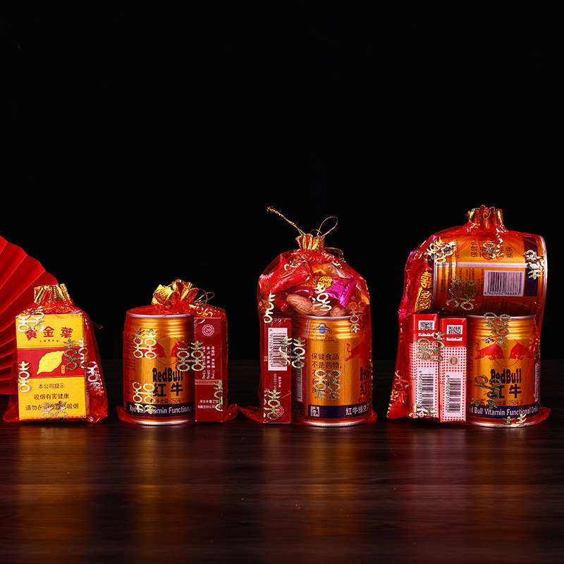 13*18厘米 装1包烟+20颗糖左右(或装一罐红牛) 14*19厘米 装2包烟 + 10颗糖 左 右