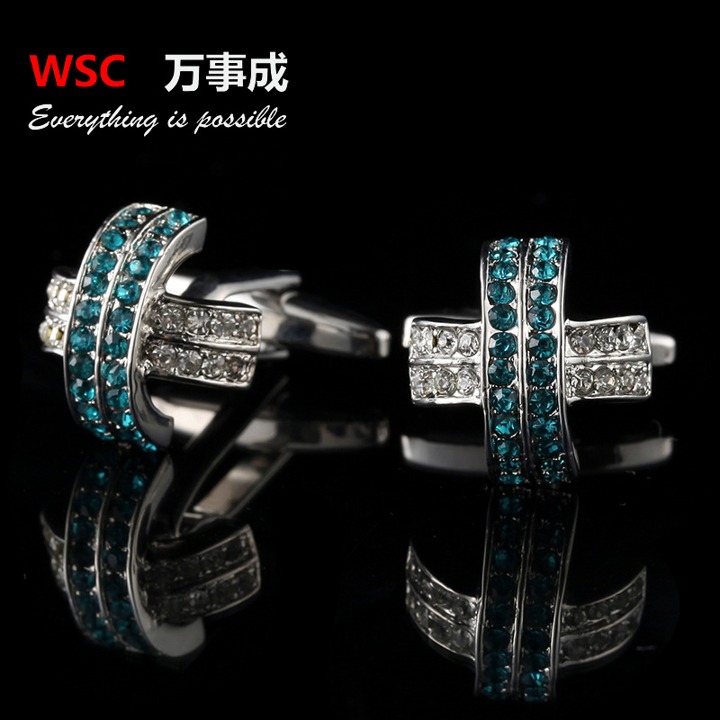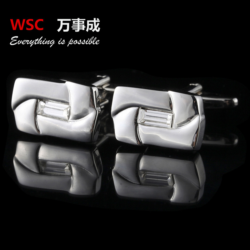 热销休闲风镶钻袖扣 新款衬衫水钻袖钉男式时尚衣饰方形水晶袖扣