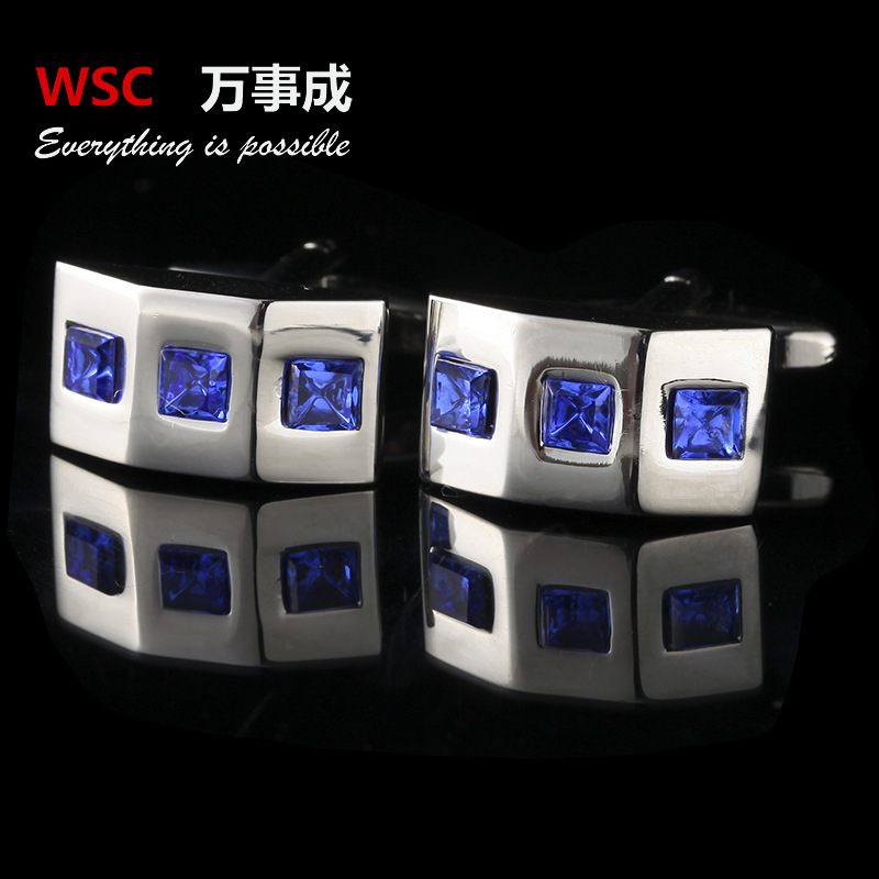 热销休闲风镶钻袖扣 新款衬衫水钻袖钉男式时尚衣饰方形水晶袖扣