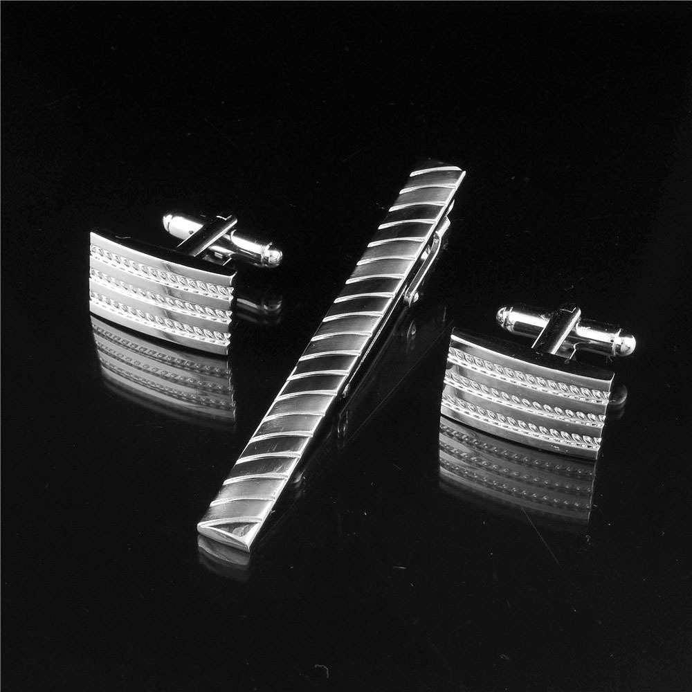 万事成拉丝套装 袖扣领带夹套装 优质铜袖口纽 法式袖扣袖钉跨境