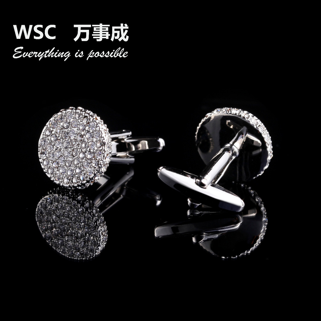水晶法式镶钻袖扣 欧美男士高档商务袖扣 圆形铜袖口钮 跨境专供 English | 投诉