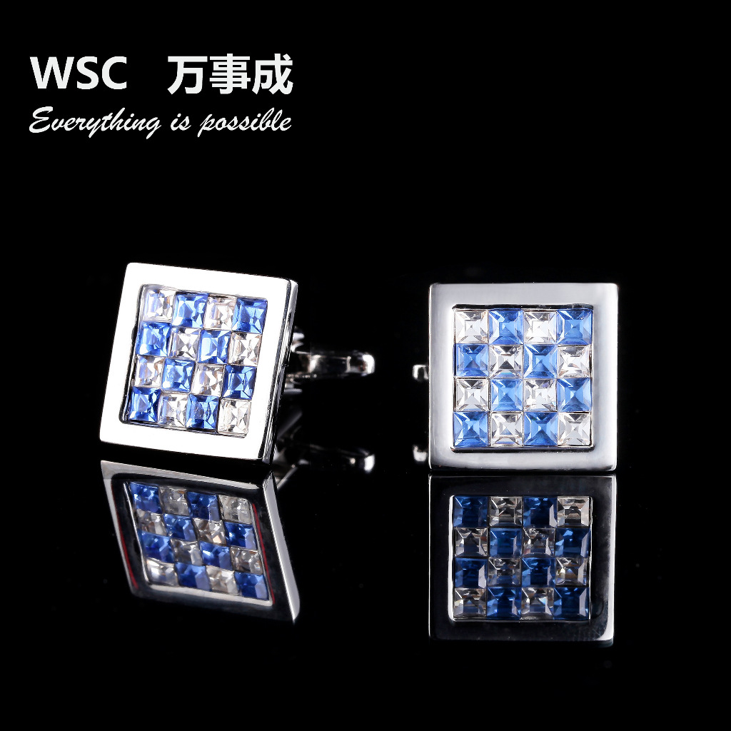 热销休闲风镶钻袖扣 新款衬衫水钻袖钉男式时尚衣饰方形水晶袖扣 English | 投诉