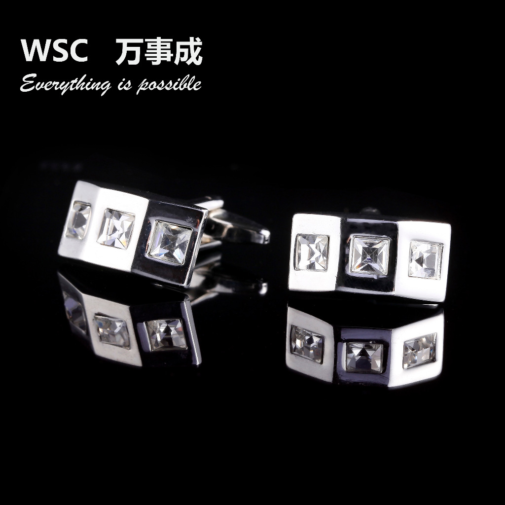 热销休闲风镶钻袖扣 新款衬衫水钻袖钉男式时尚衣饰方形水晶袖扣