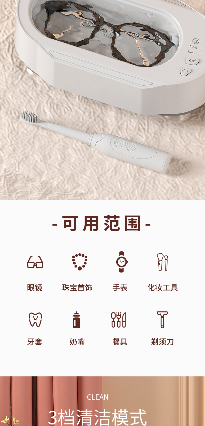 高频声波眼镜清洗机家用洗眼镜机首饰项链牙套全自动迷你便携清洁