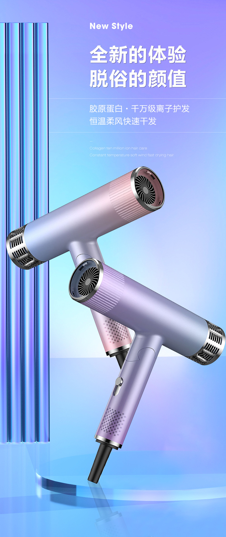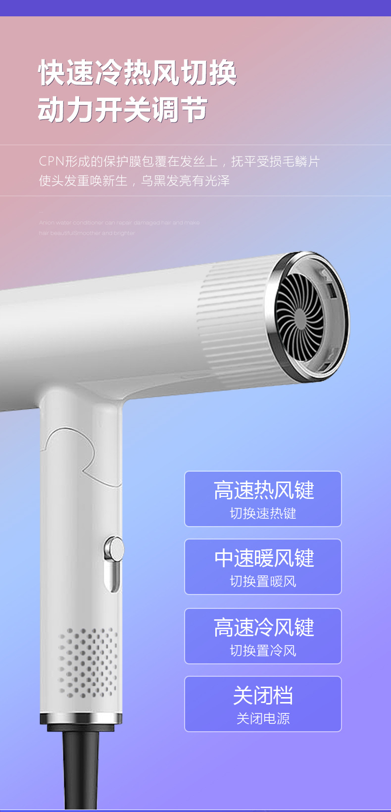 厂家批发大功率电吹风蓝光吹风机家用发廊冷热吹风筒跨境 English | 投诉