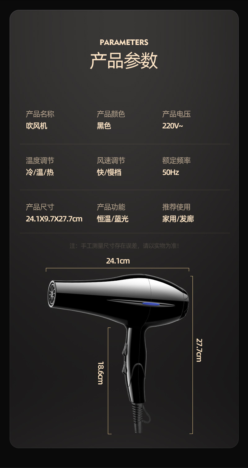 厂家批发吹风机发廊家用冷热风电吹风网红蓝光吹风筒跨境礼品代发 English | 投诉