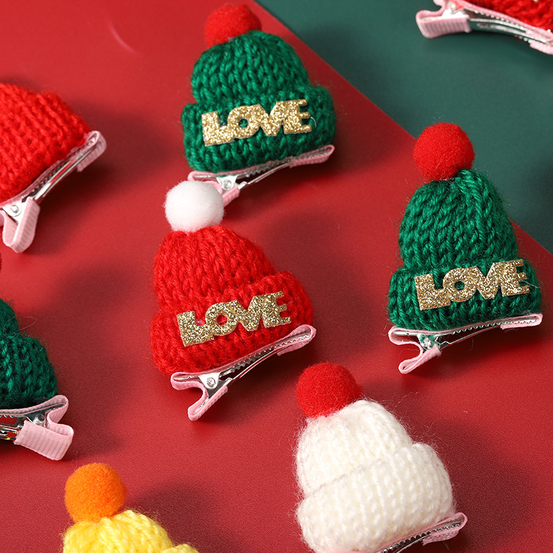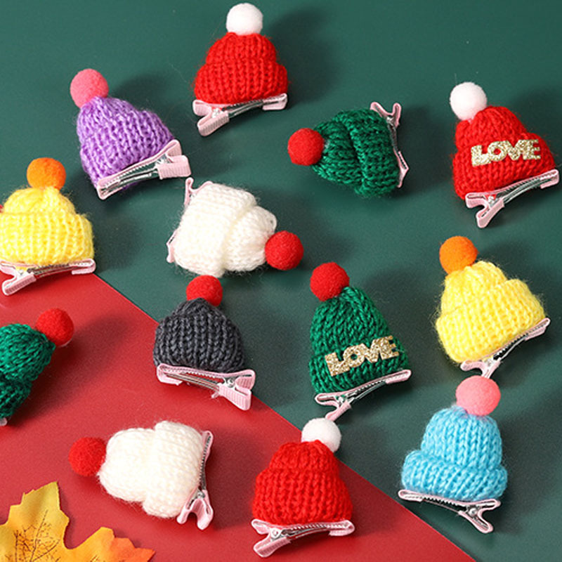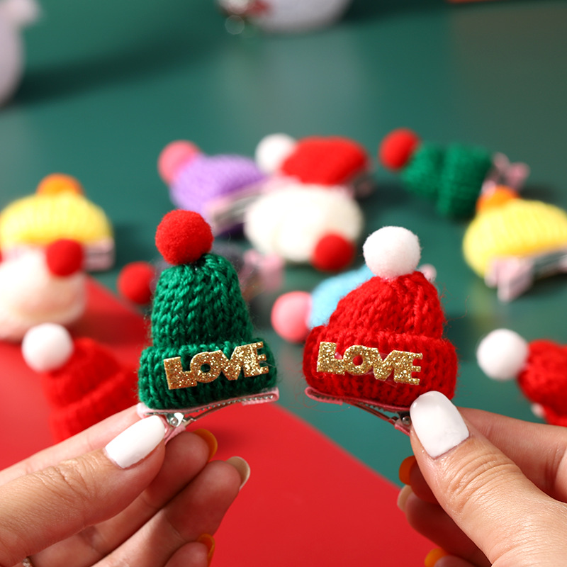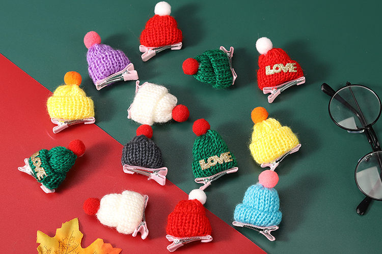 奶茶红酒帽子针织手指帽圣诞节迷你发夹圣诞酒瓶帽毛线小帽子