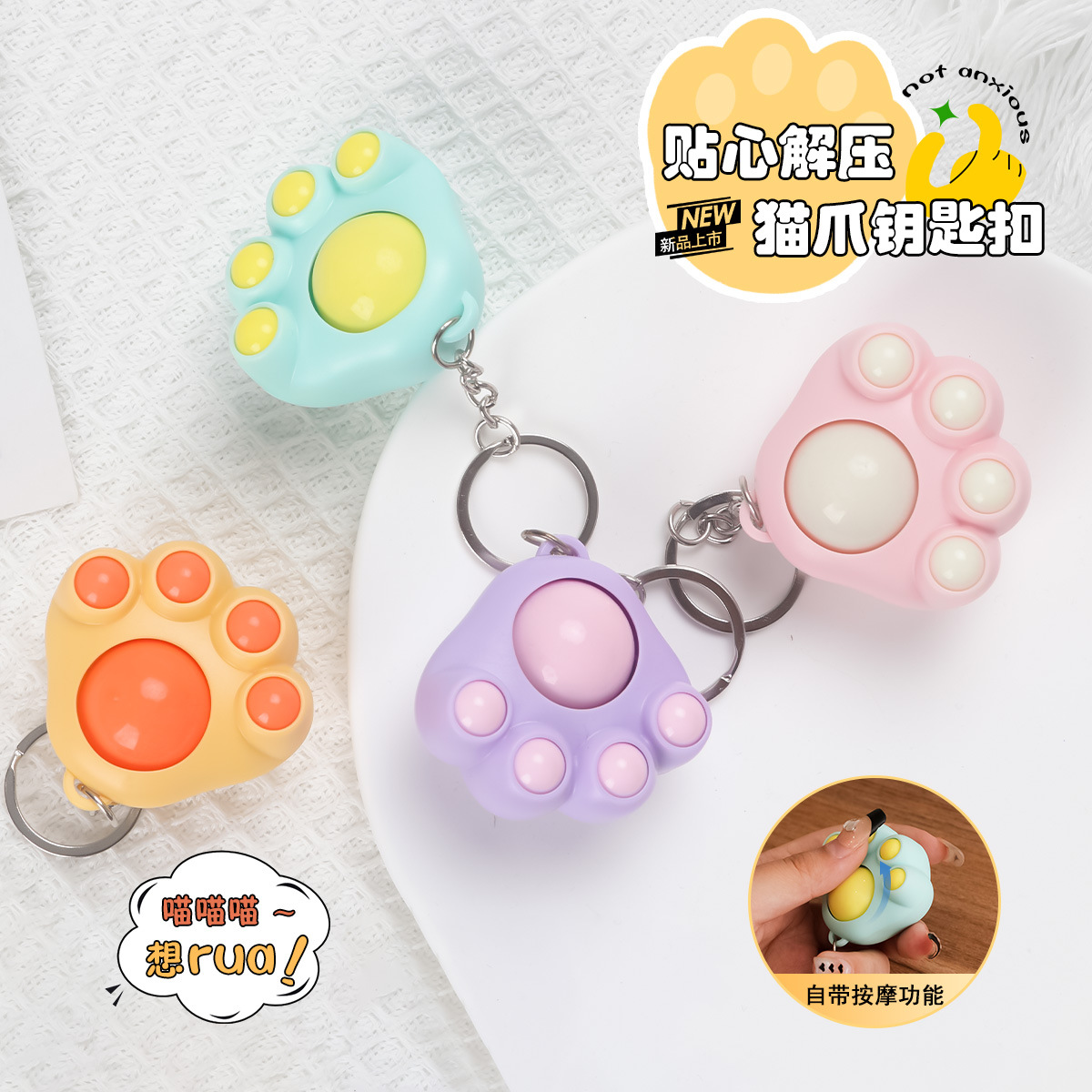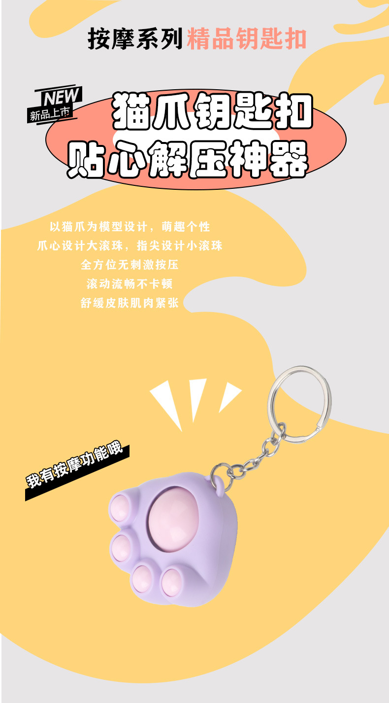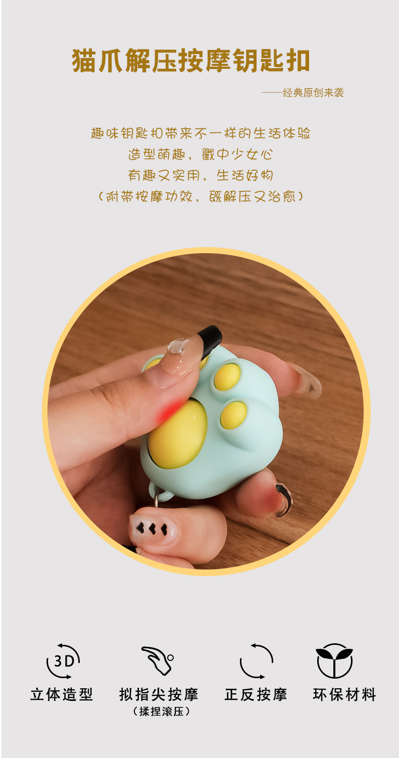 卡通解压按摩猫爪钥匙扣挂件可爱便携包包挂件萌宠小玩具抖音爆款