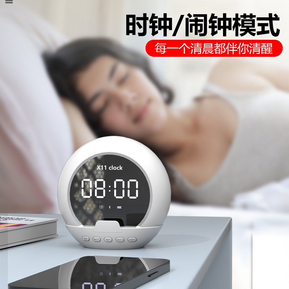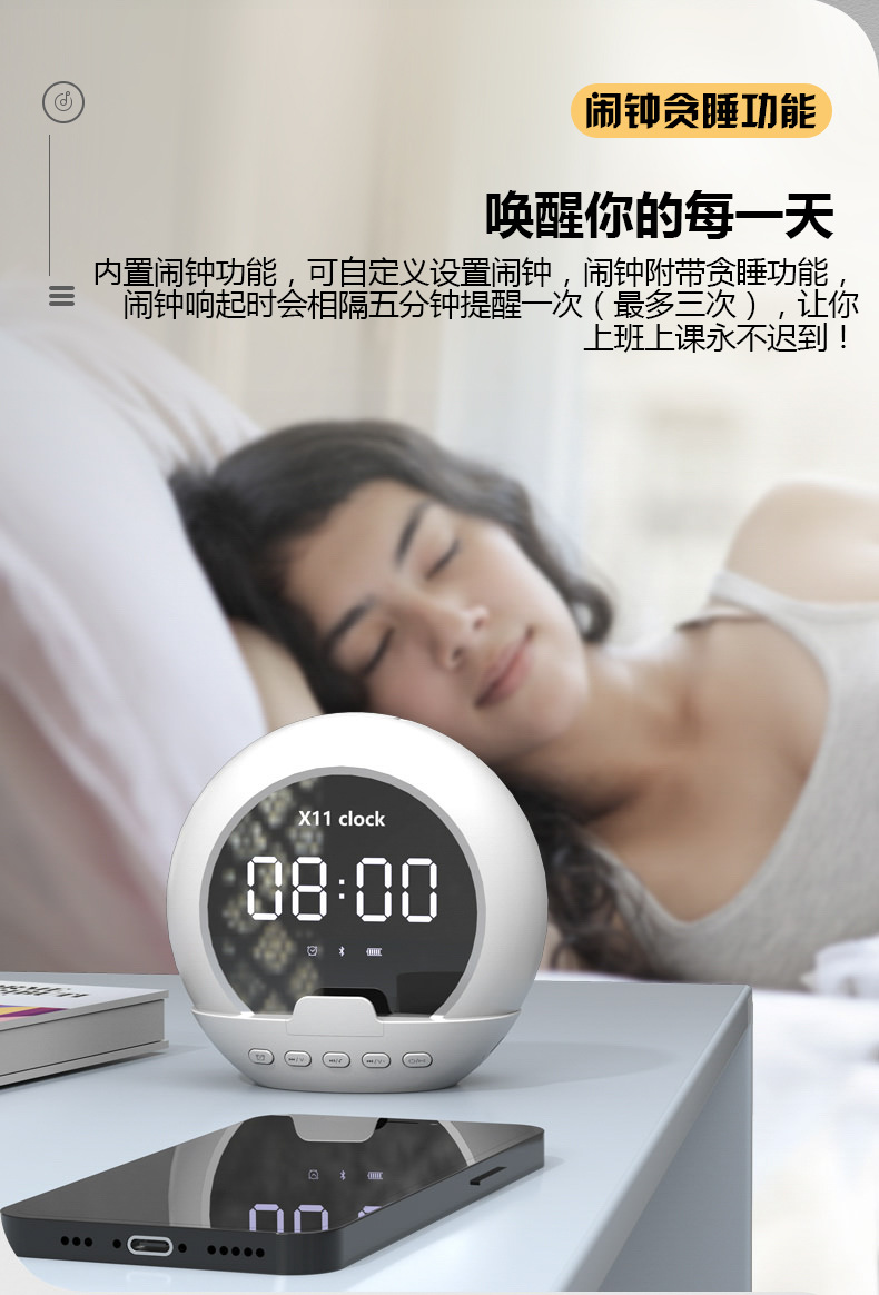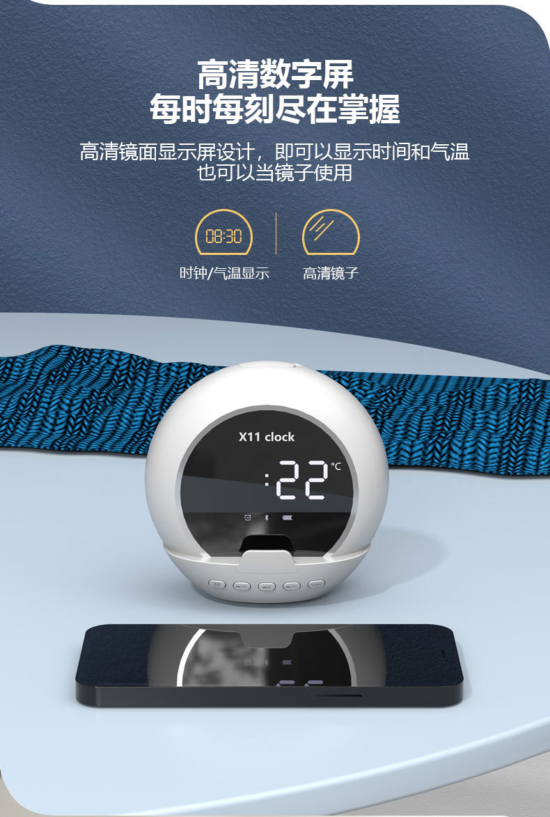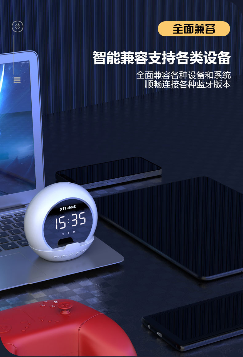 新款无线蓝牙音箱便携多功能重低音炮闹钟时钟温度计数显迷你音响