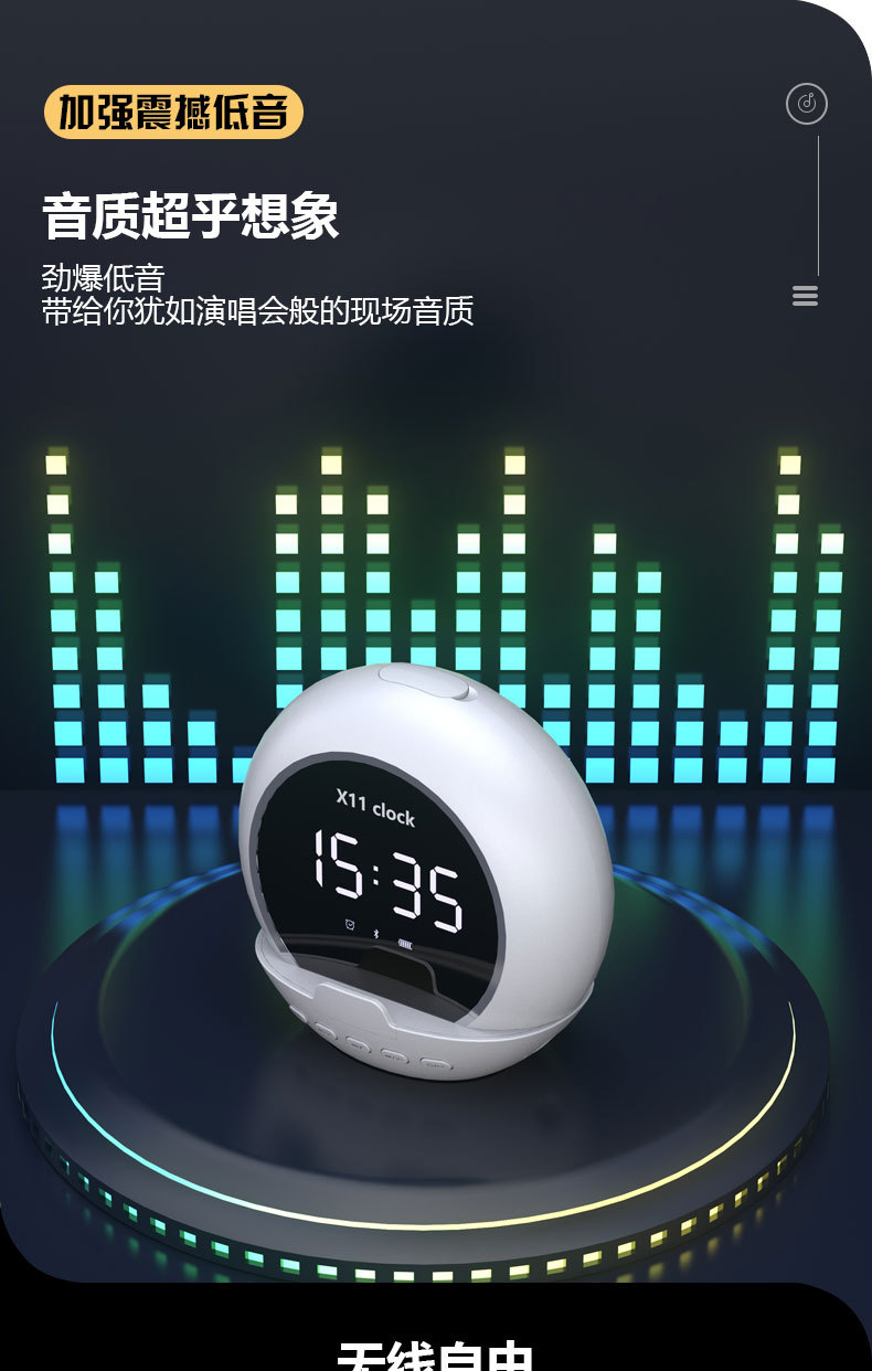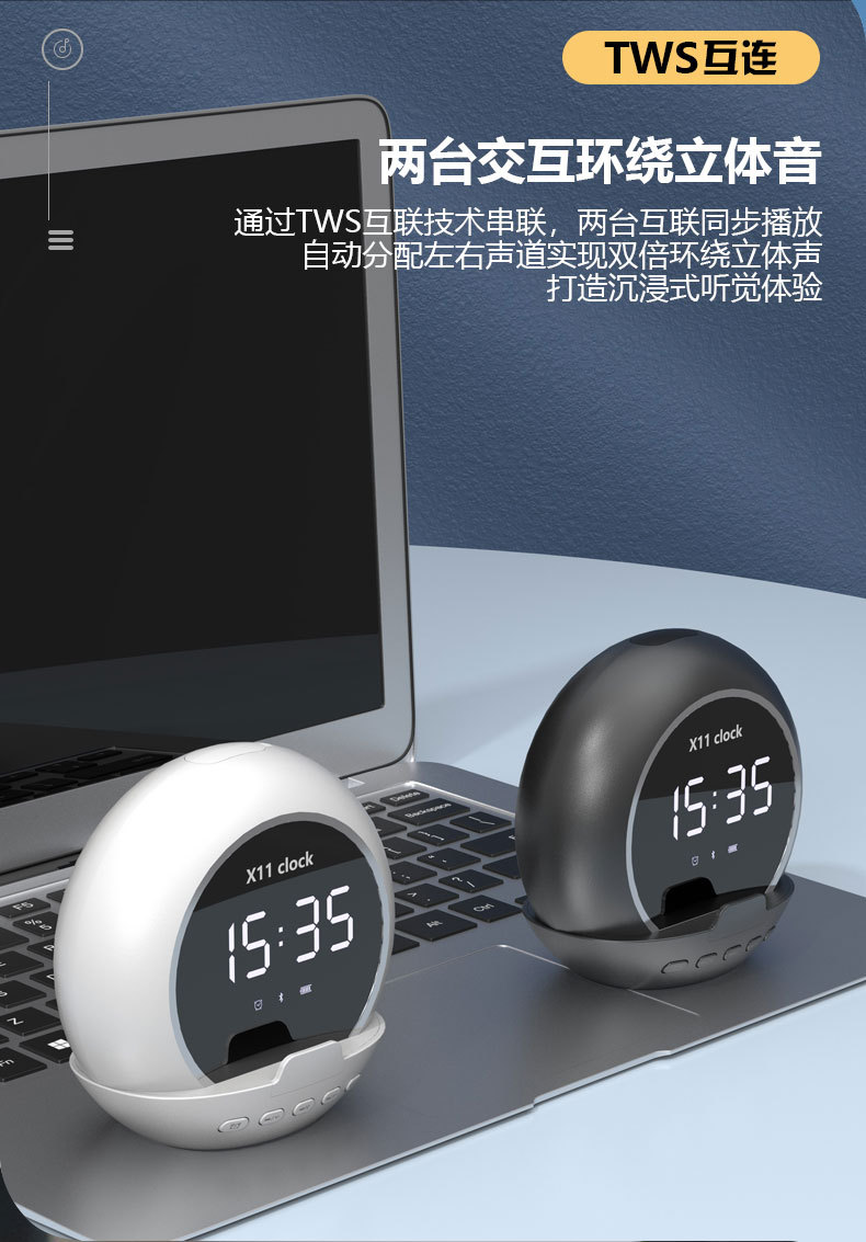 新款无线蓝牙音箱便携多功能重低音炮闹钟时钟温度计数显迷你音响 投诉