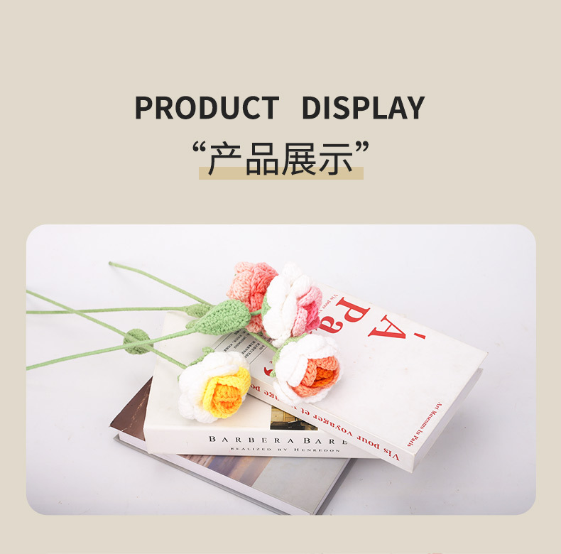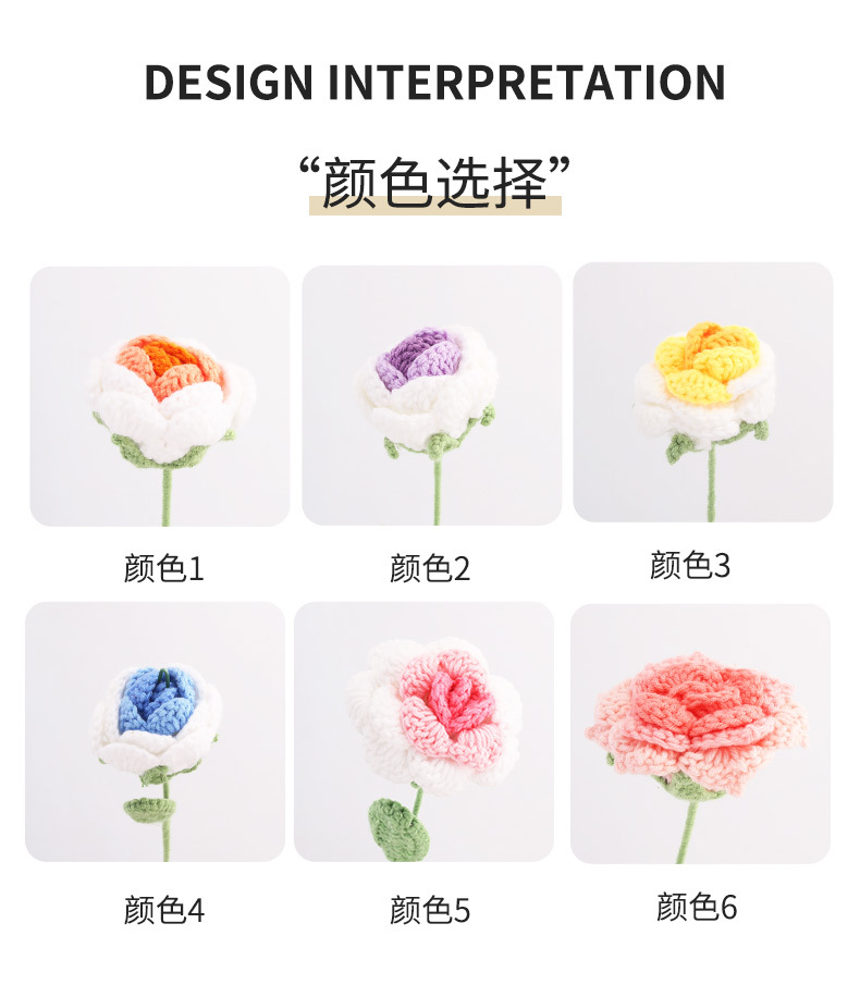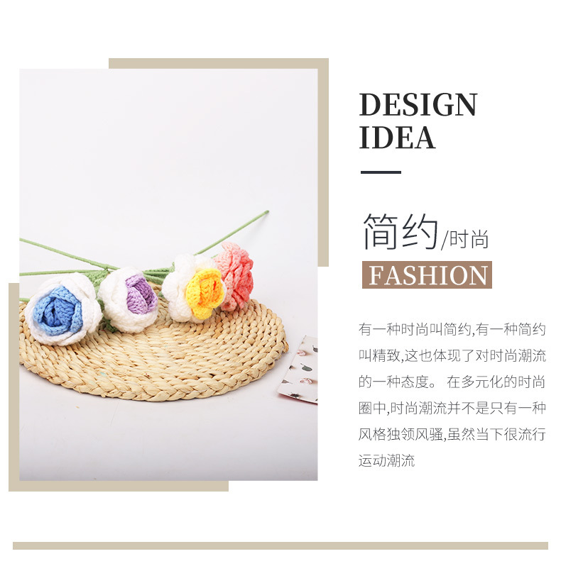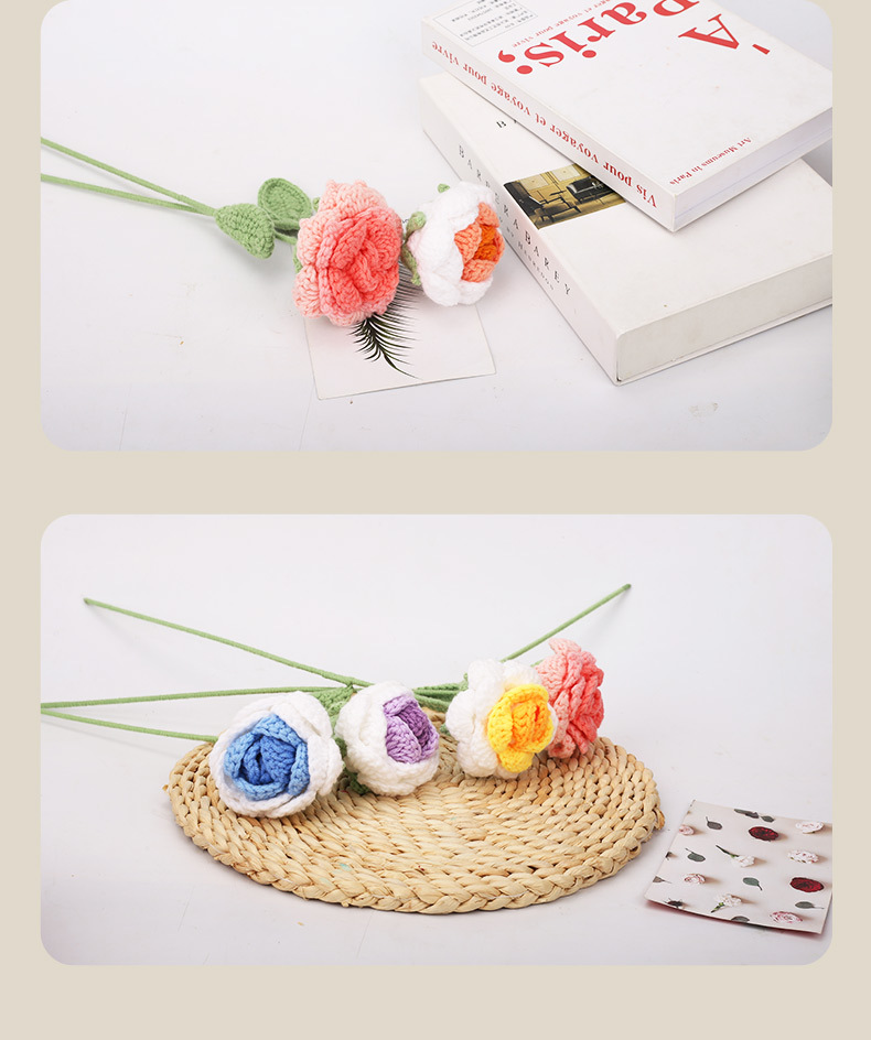 钩针织毛线花手工编织渐变色仿真玫瑰花摆件婚庆摄影道具礼品假花 English | 投诉