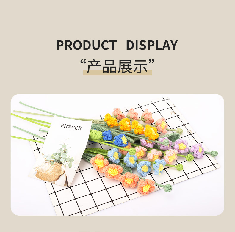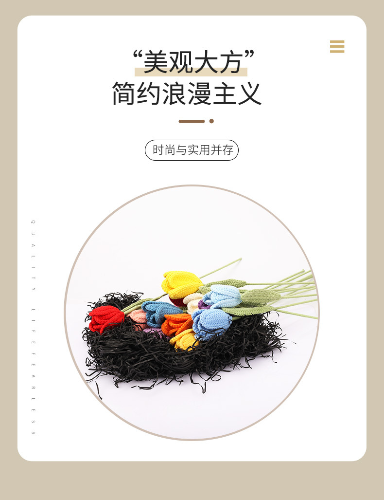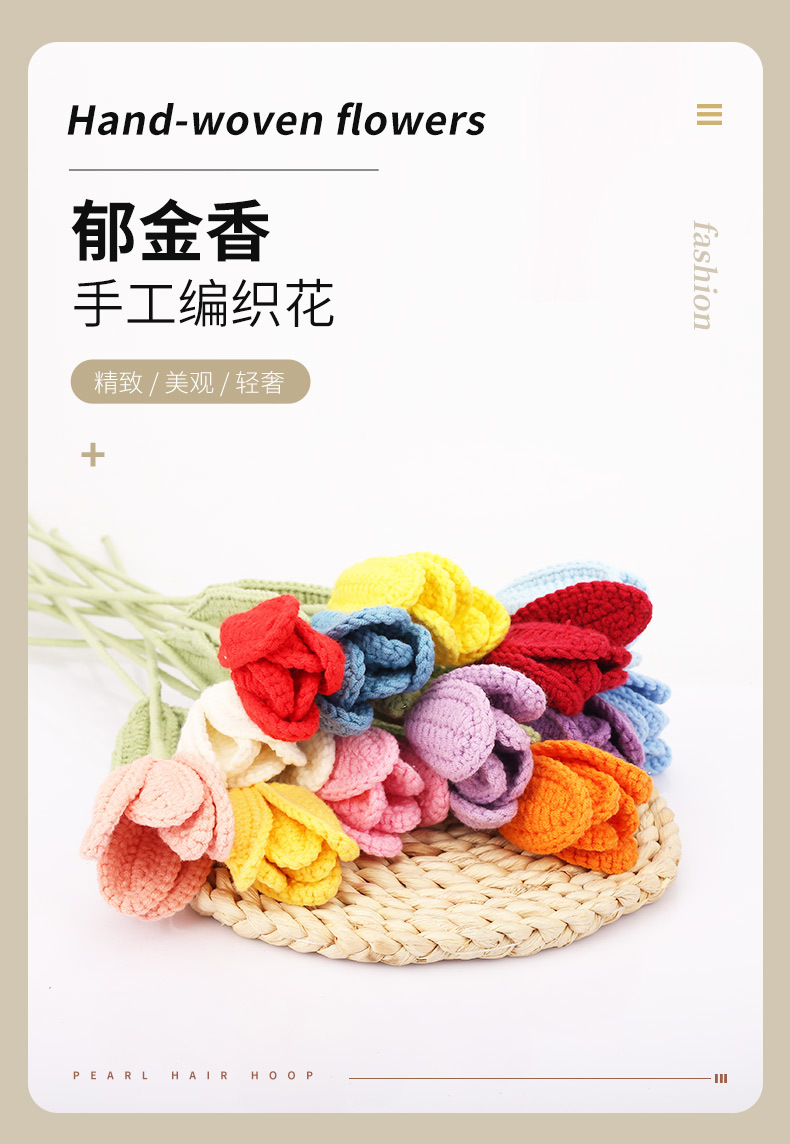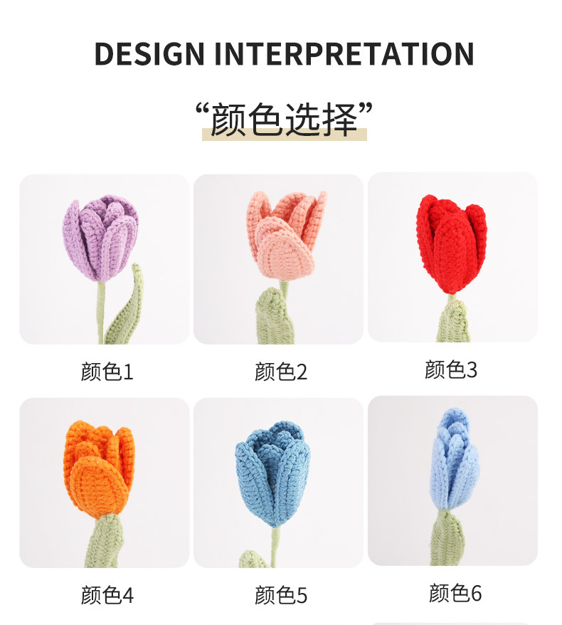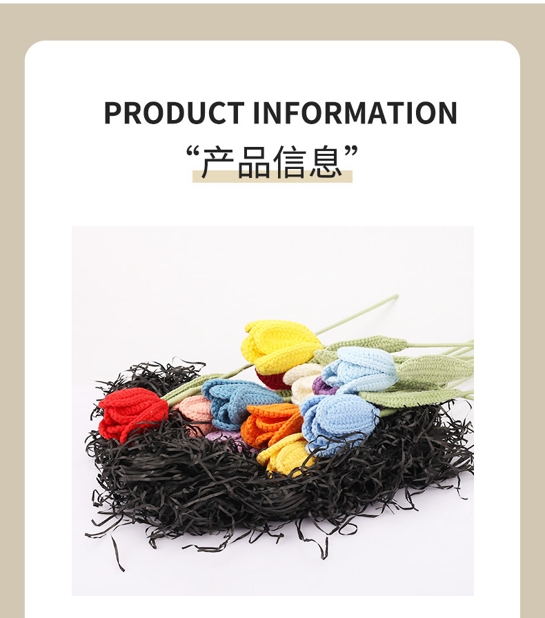手工钩织毛线郁金香花束钩针编织假花朵成品饰品拍摄道具家居摆件 English | 投诉