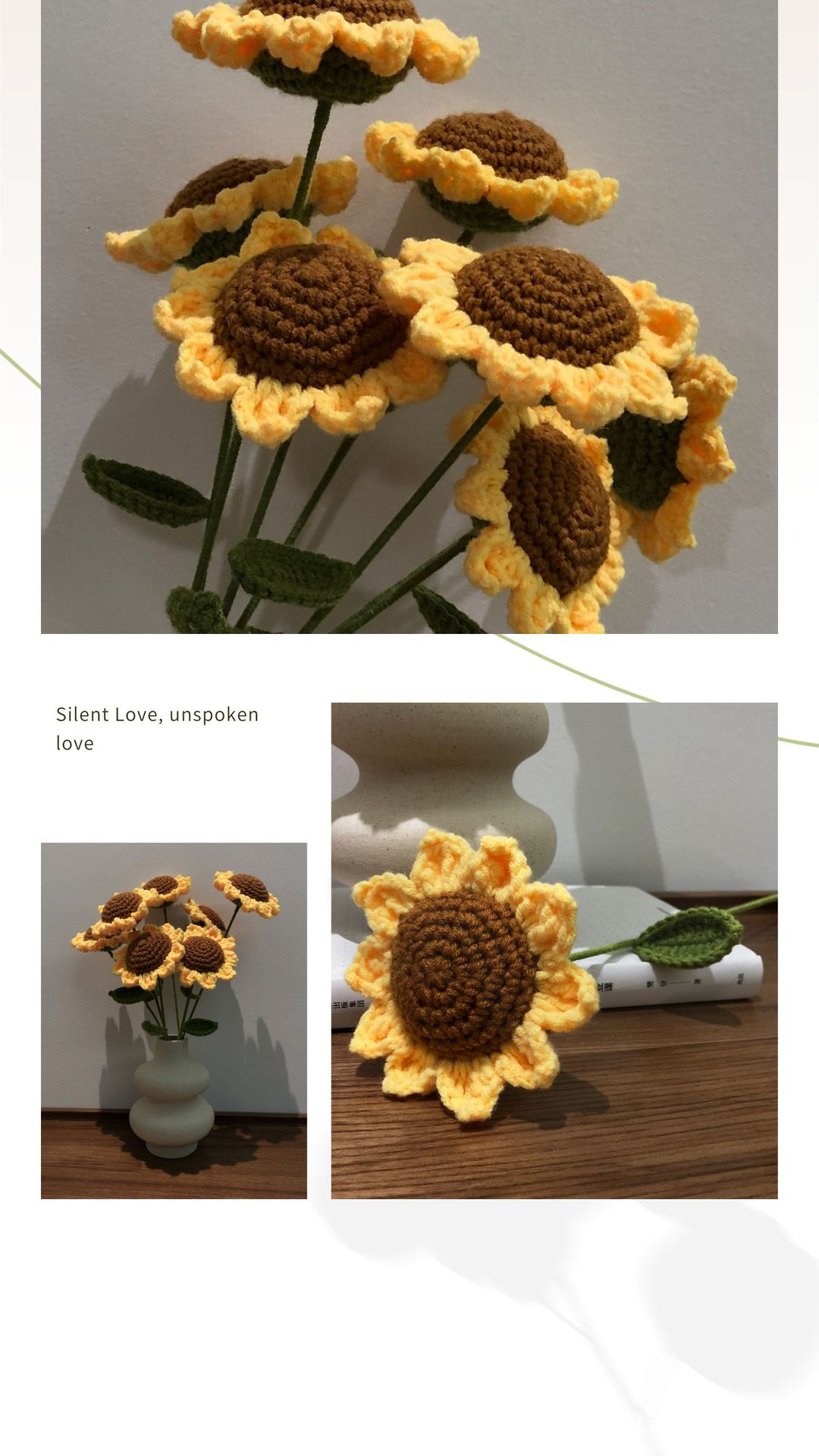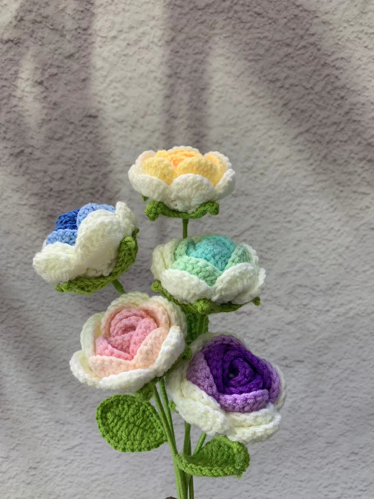 成品手工编织玫瑰花朵 仿真向日葵假花束毛线钩针编织教师节礼物 English | 投诉