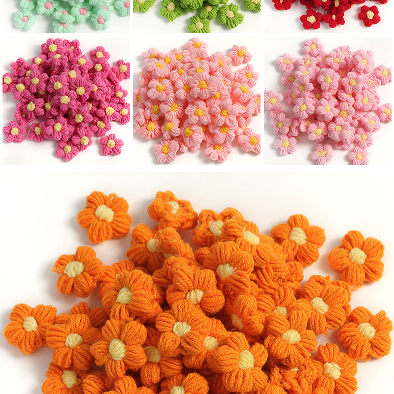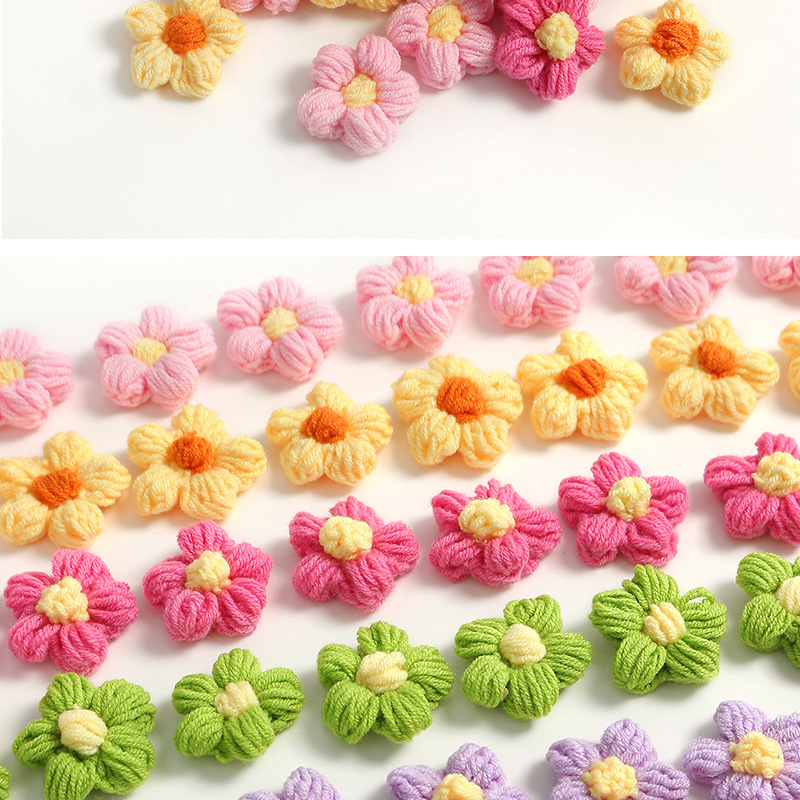 成品多彩手工钩织毛线泡芙花朵仿真花假花服饰包包挂件衣服配饰