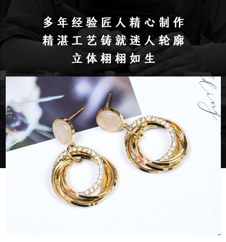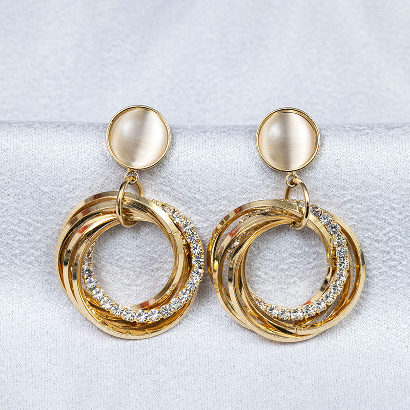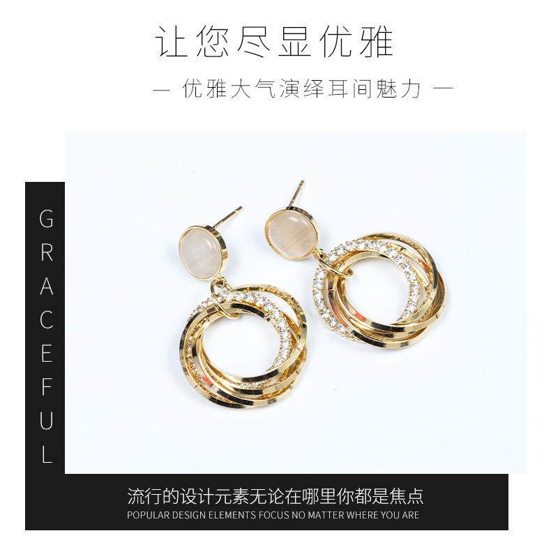气质几何耳坠法式OL多圈个性猫眼石圈圈耳环 (真金电镀) English | 投诉