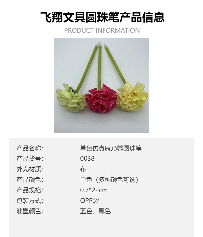 创意仿真康乃馨造型工艺笔圆珠笔 母亲节日礼品笔 毛绒笔批发 投诉