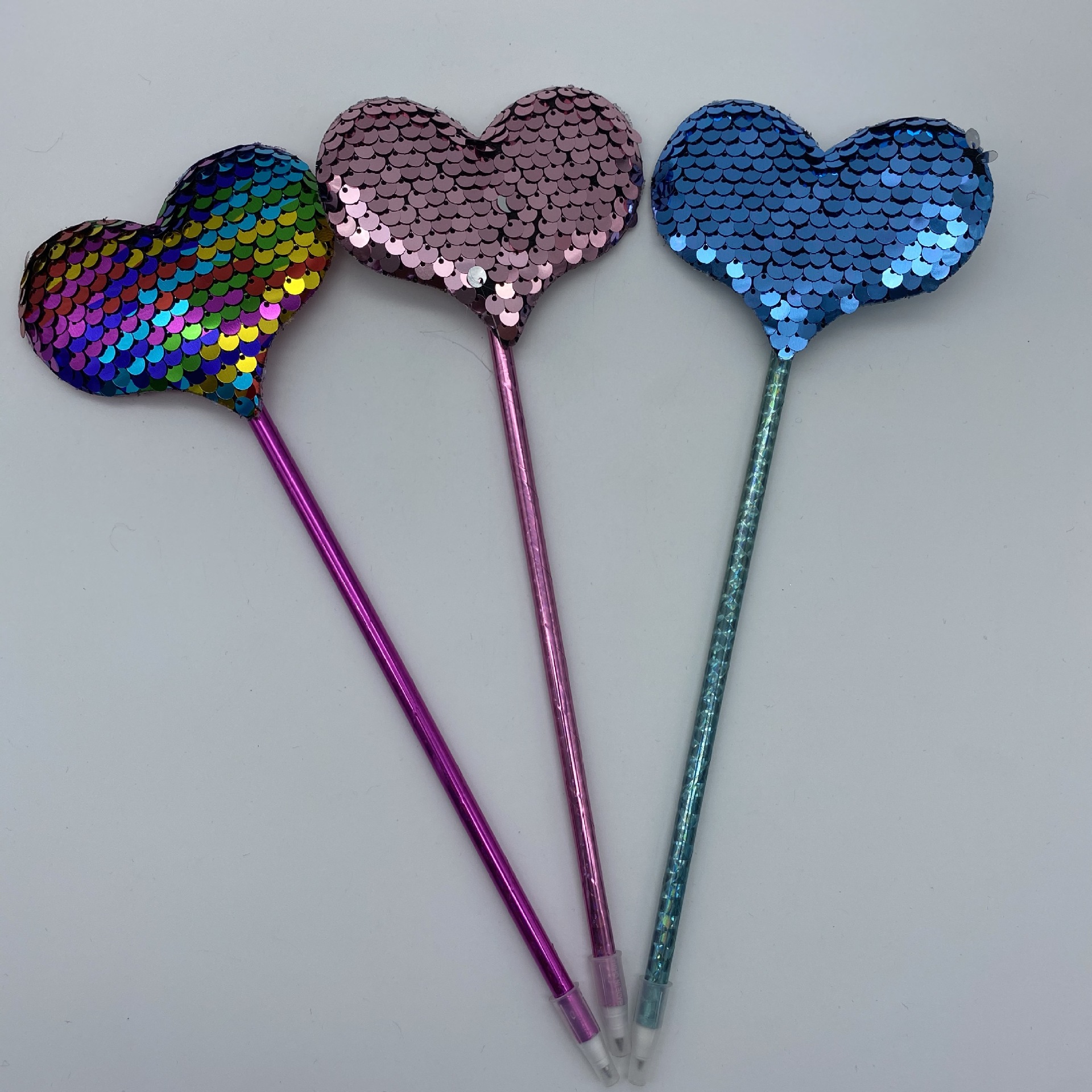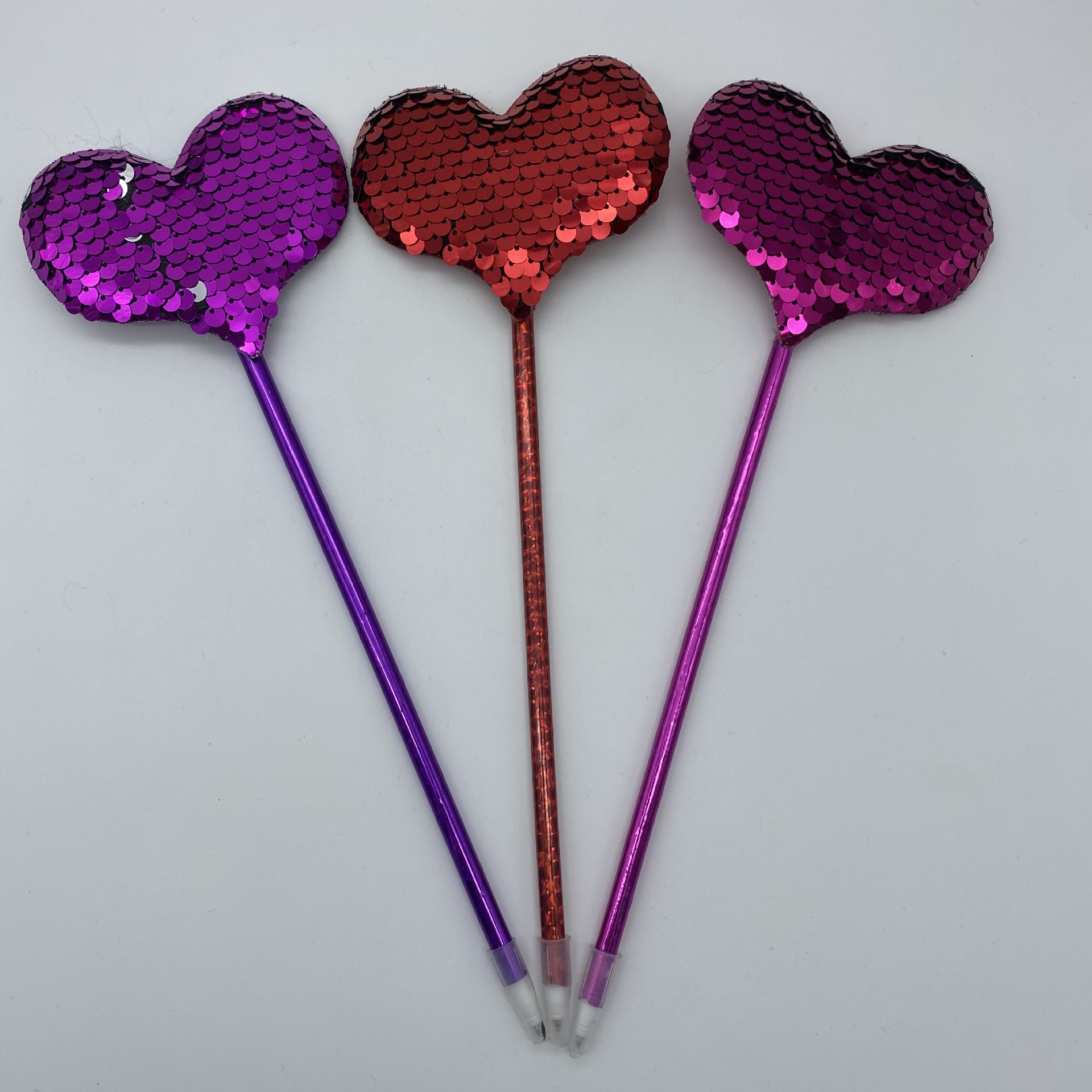 创意亮片爱心造型工艺笔圆珠笔 节日礼品笔 毛绒笔批发