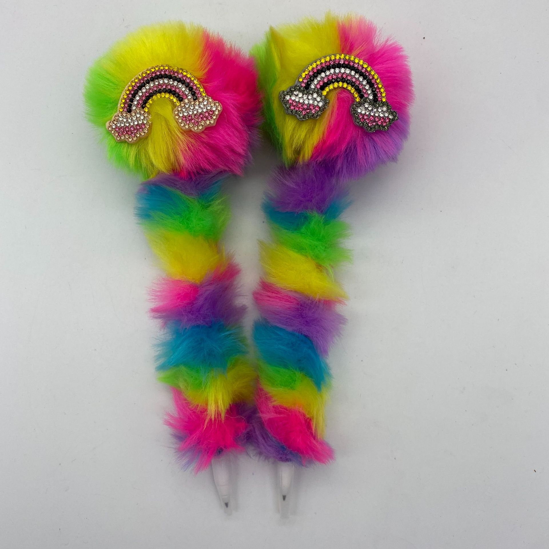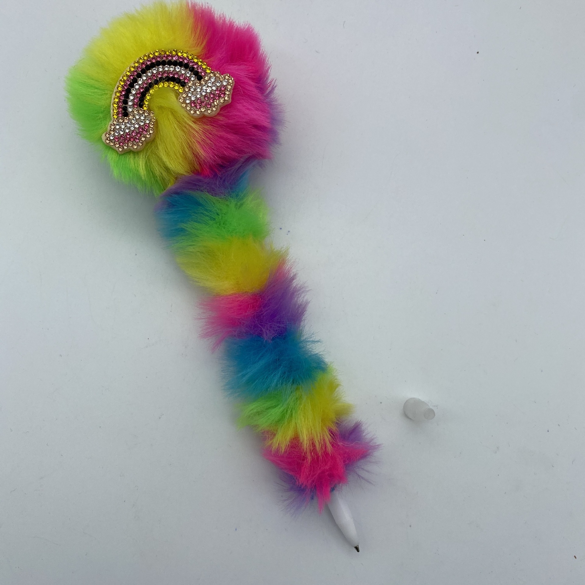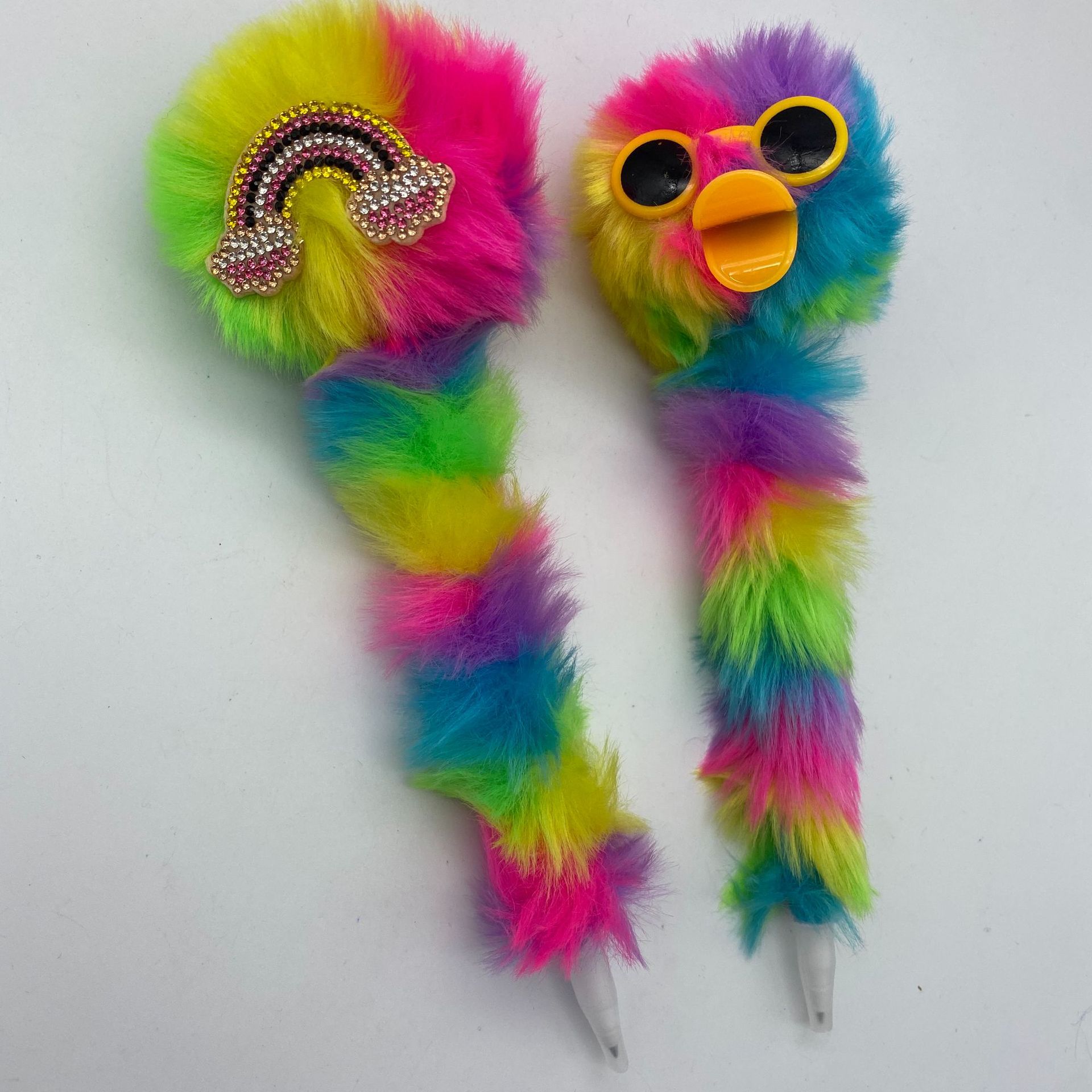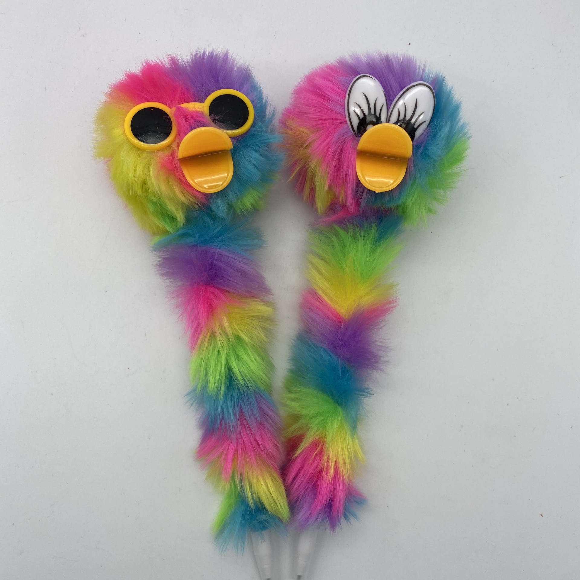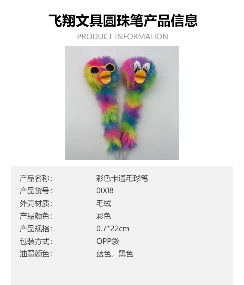 跨境厂家鸭子嘴彩虹色毛球笔卡通圆珠笔 办公文具 创意装饰工艺笔 投诉