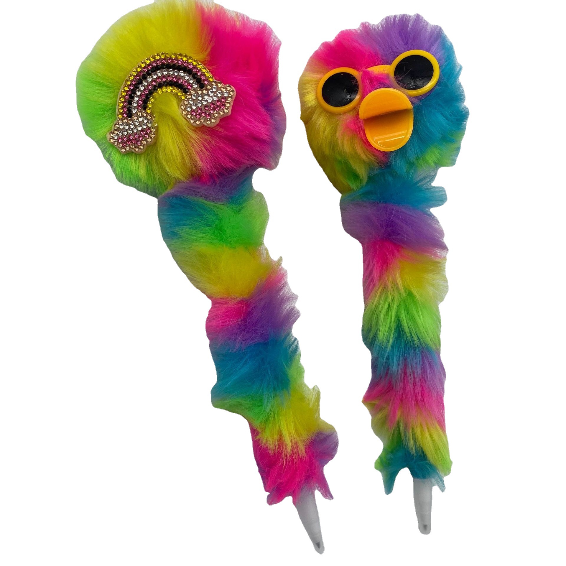 跨境厂家鸭子嘴彩虹色毛球笔卡通圆珠笔 办公文具 创意装饰工艺笔