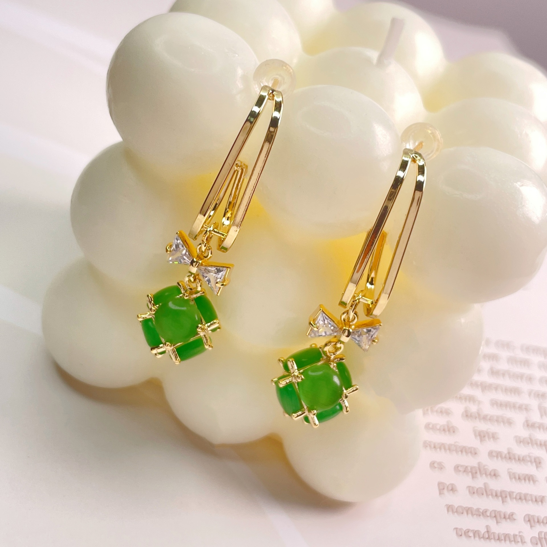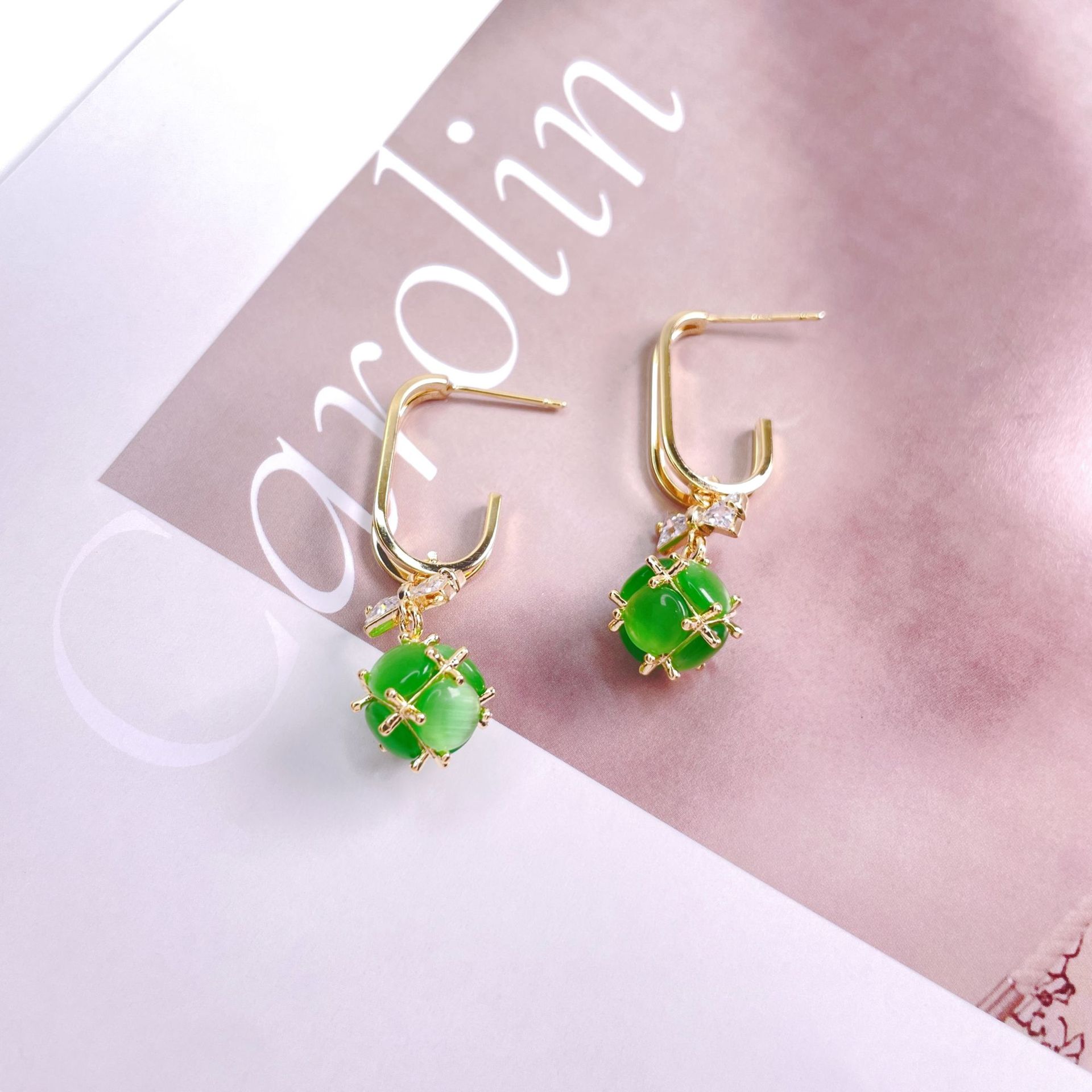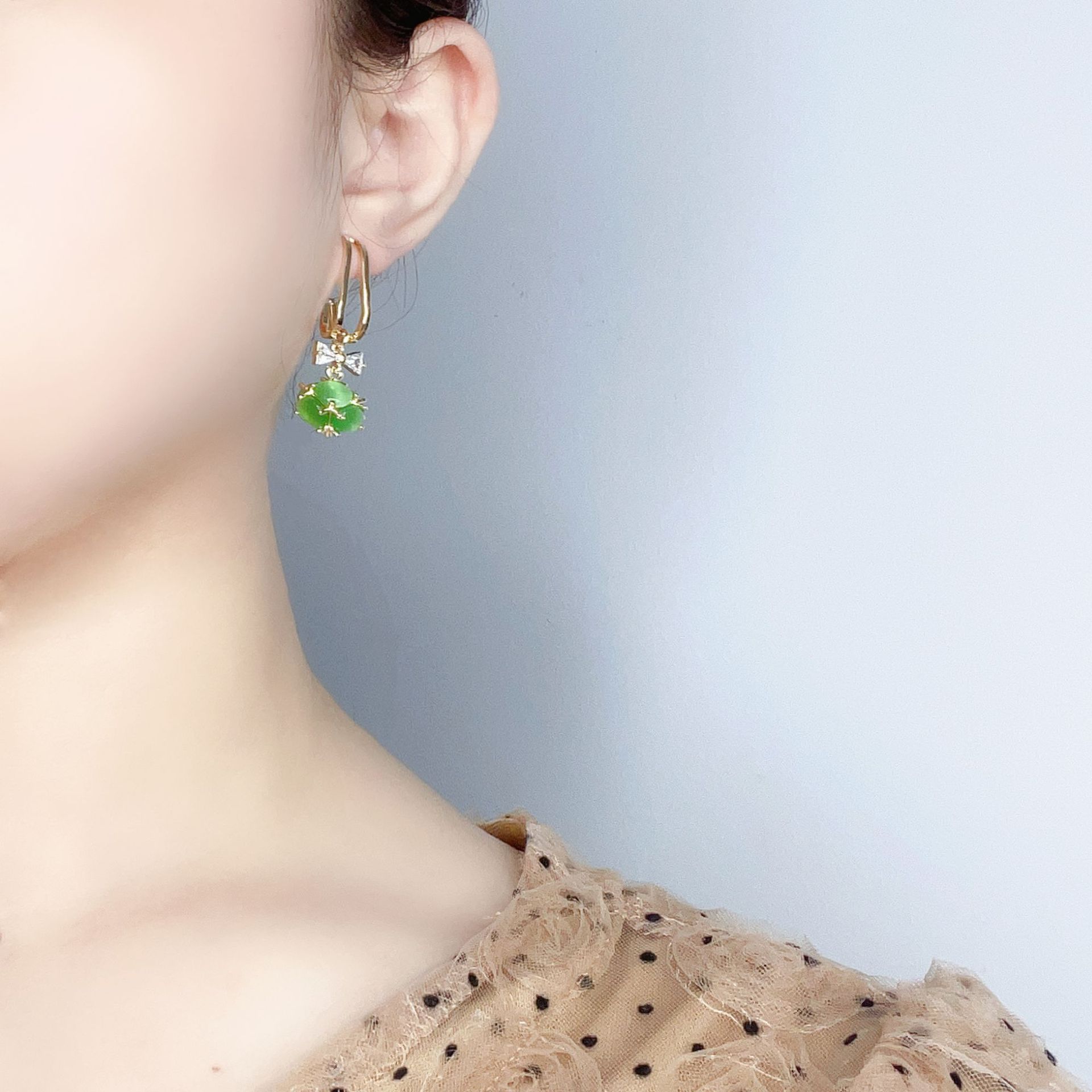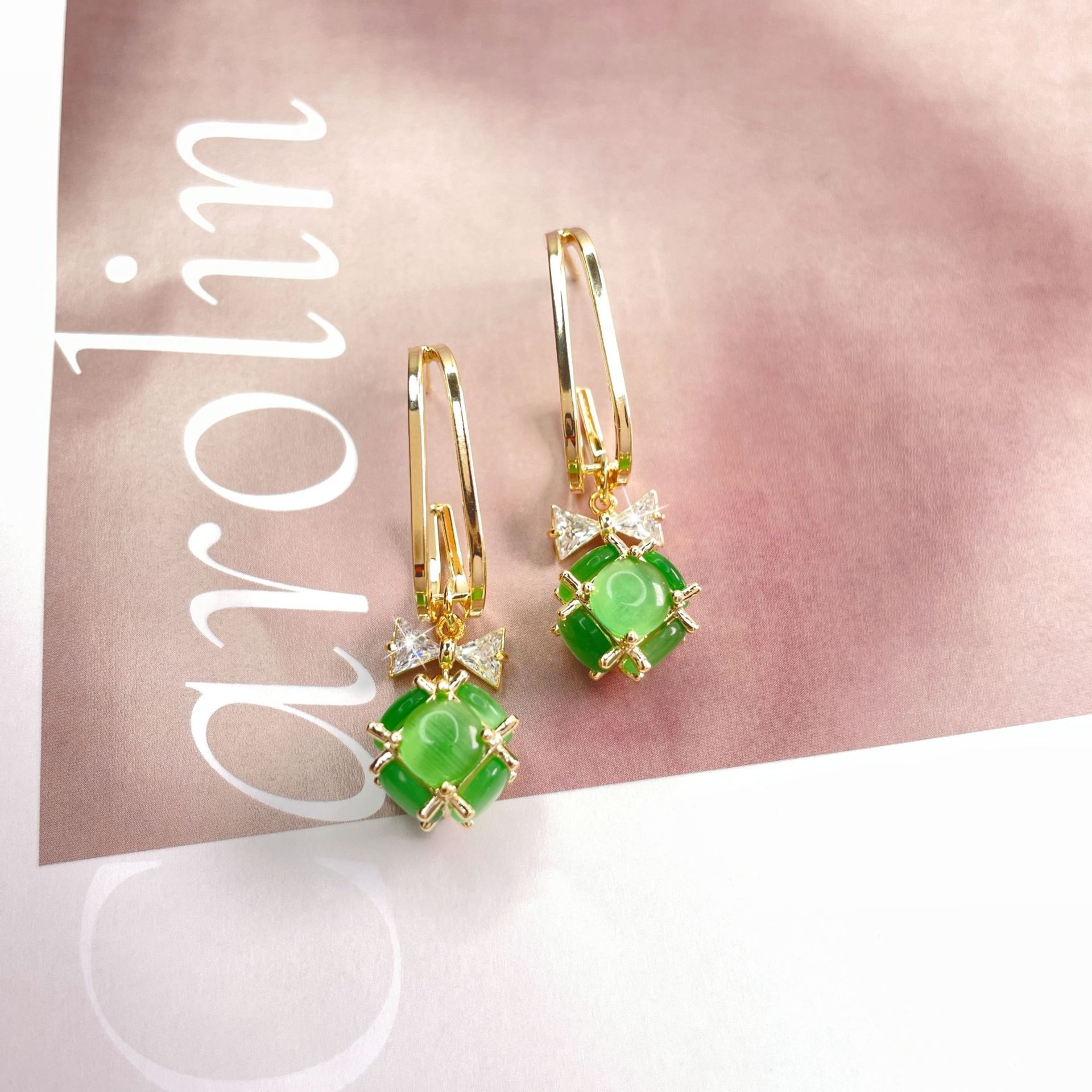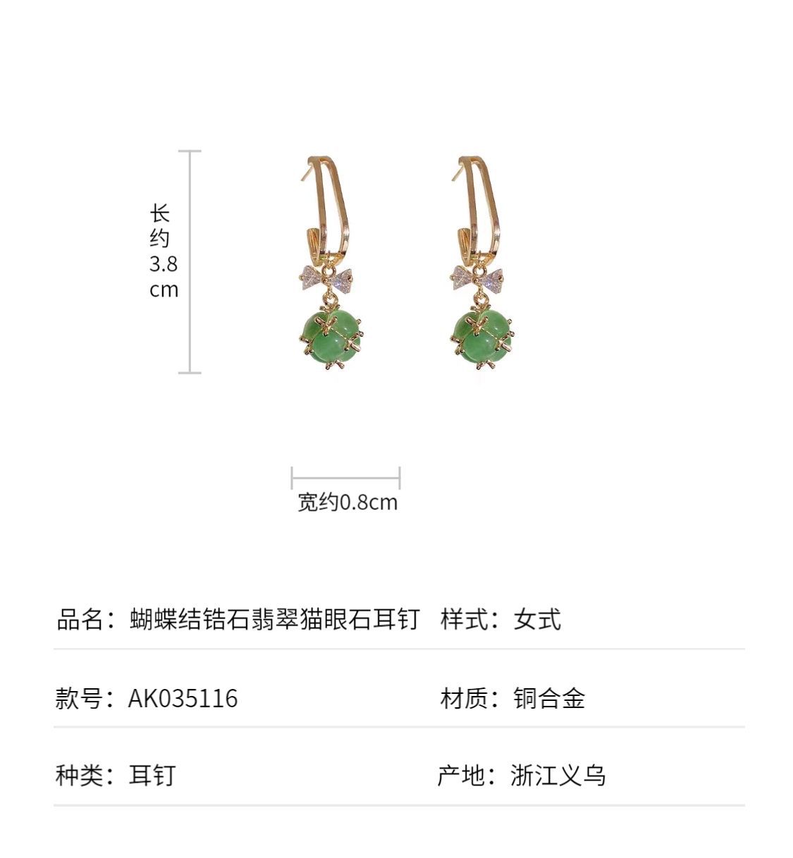 韩版2023年新款潮网红高级感猫眼石耳坠锆石蝴蝶结轻奢耳环女 English | 投诉