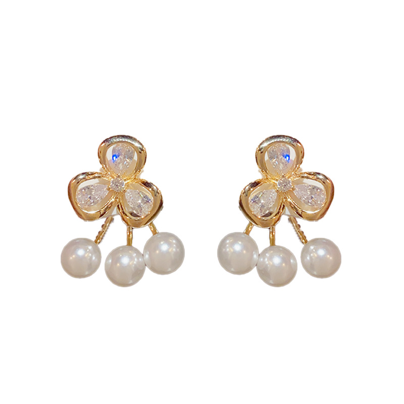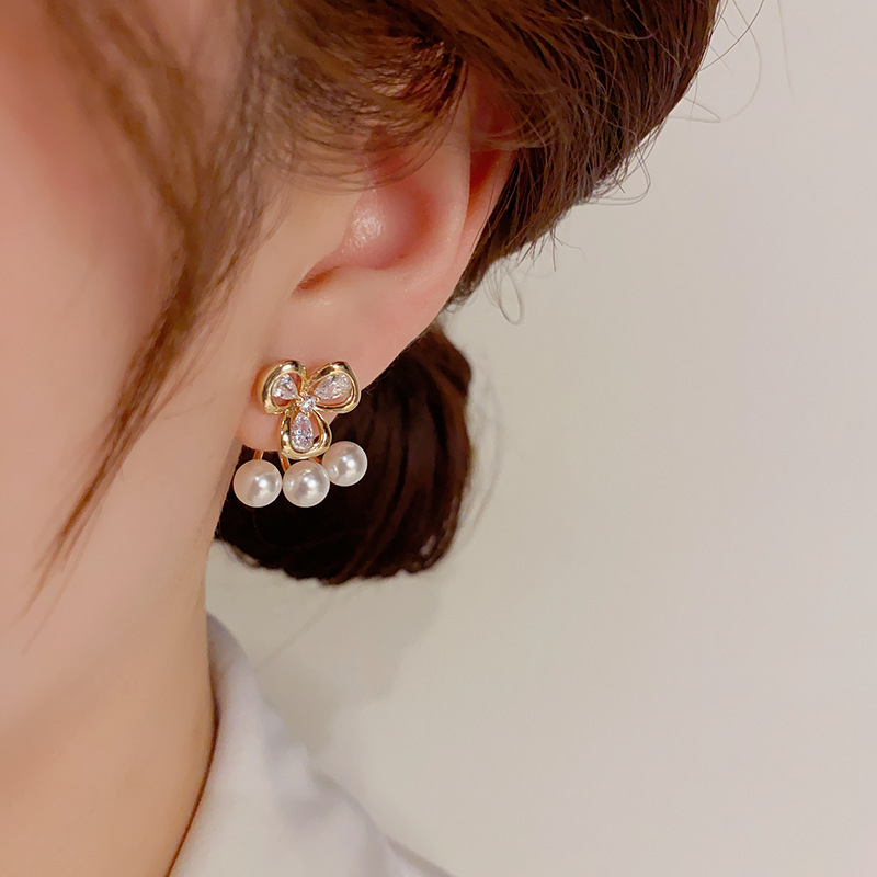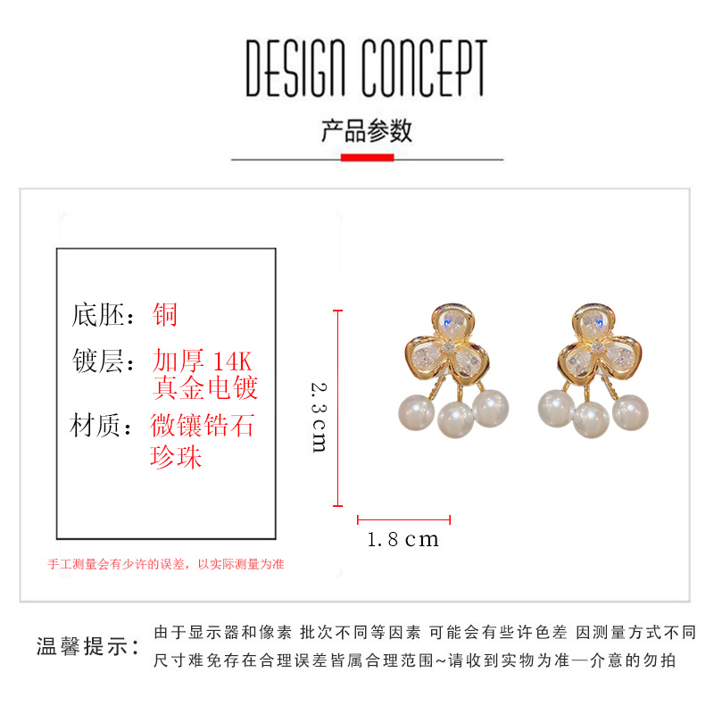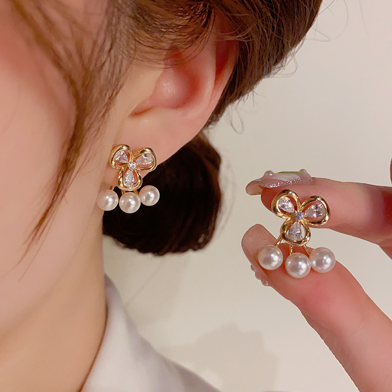 日韩精致时尚两戴款锆石花朵珍珠耳钉高级感个性百搭耳环 English | 投诉