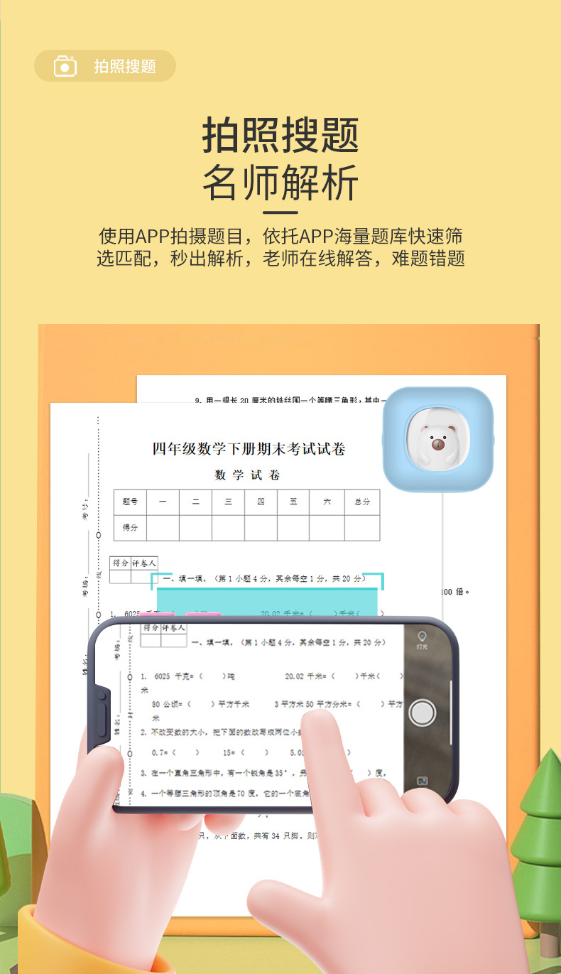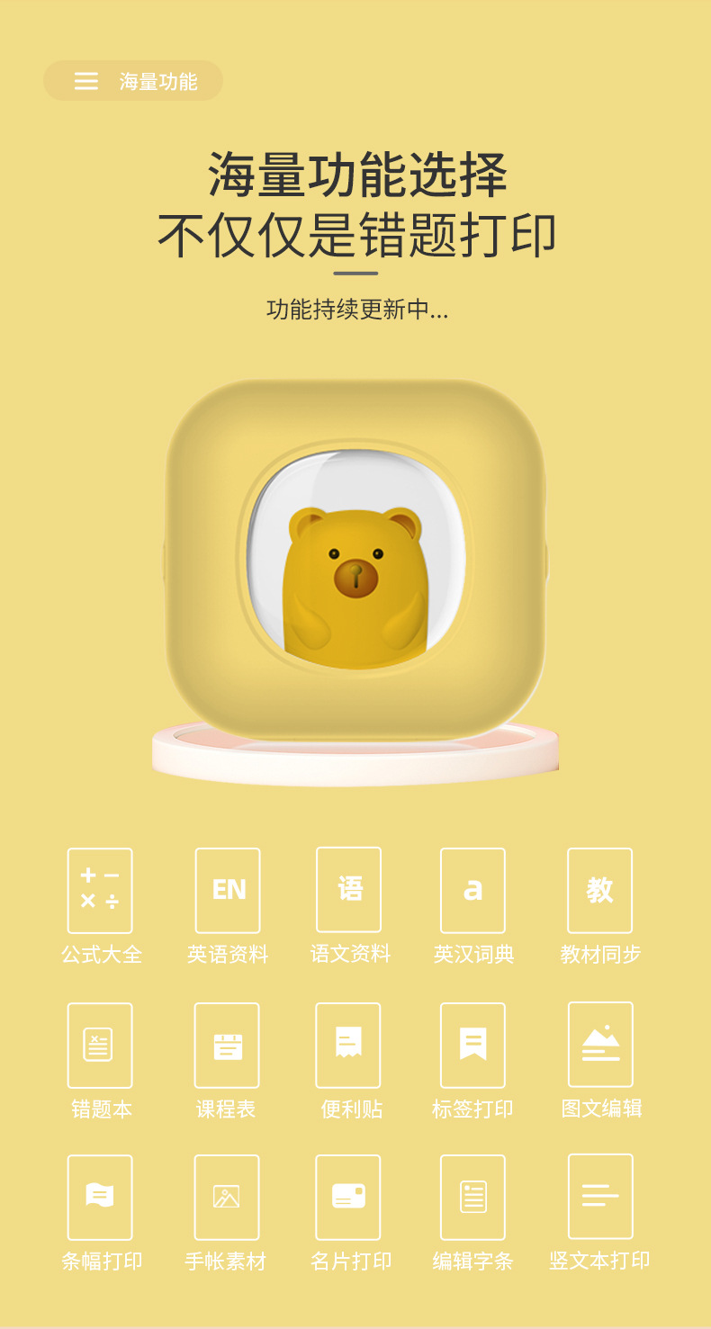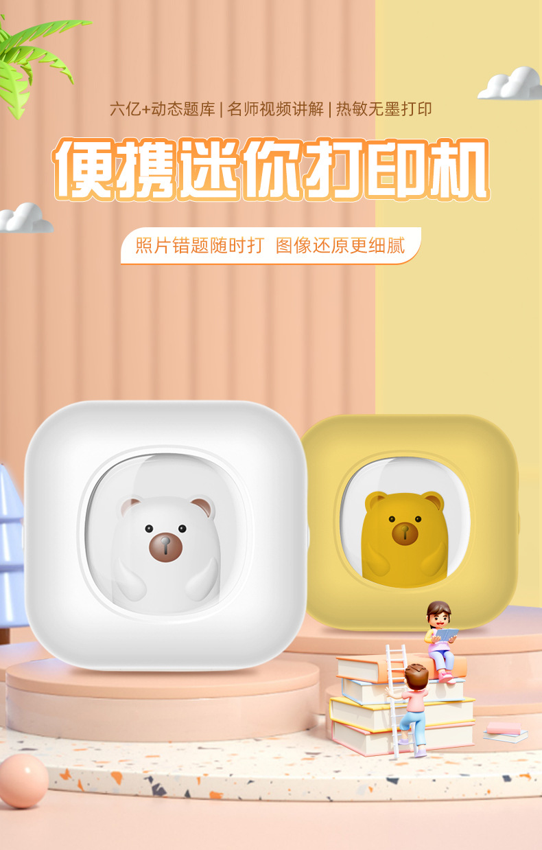 新款高清便携式迷你小熊错题打印机图片文字打印蓝牙mini printer