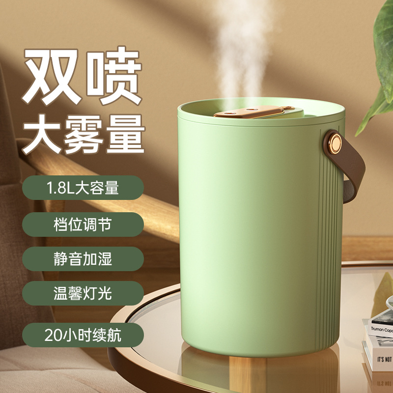 新款双喷头加湿器家用桌面USB补水喷雾器迷你七彩夜灯空气雾化器