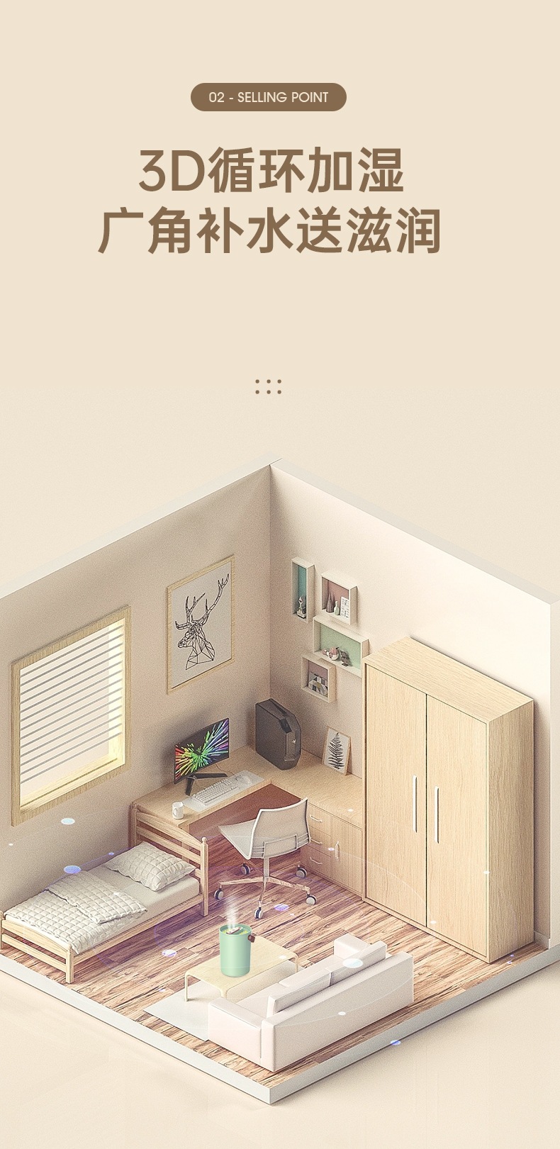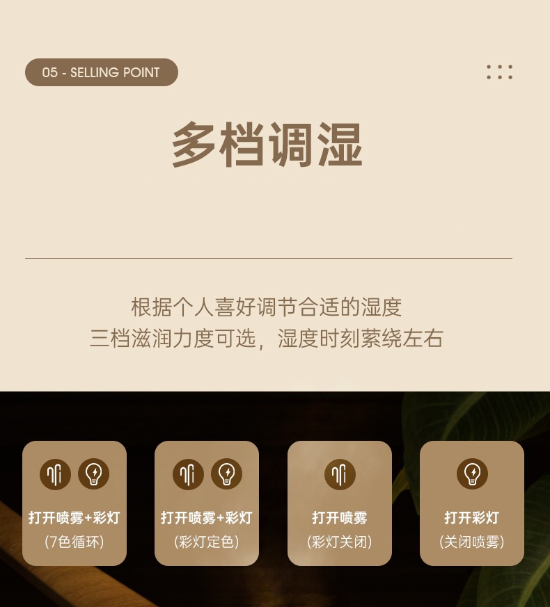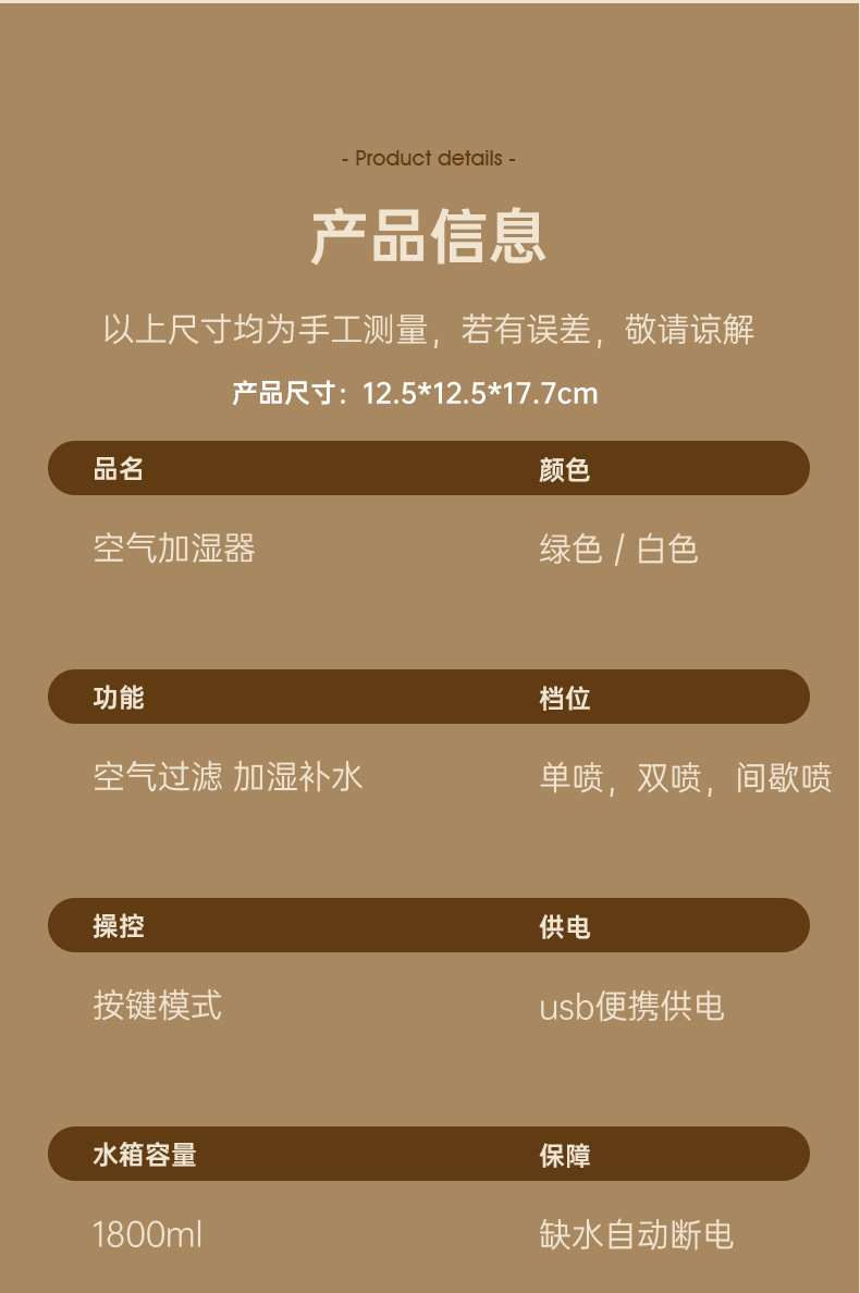 新款双喷头加湿器家用桌面USB补水喷雾器迷你七彩夜灯空气雾化器 English | 投诉