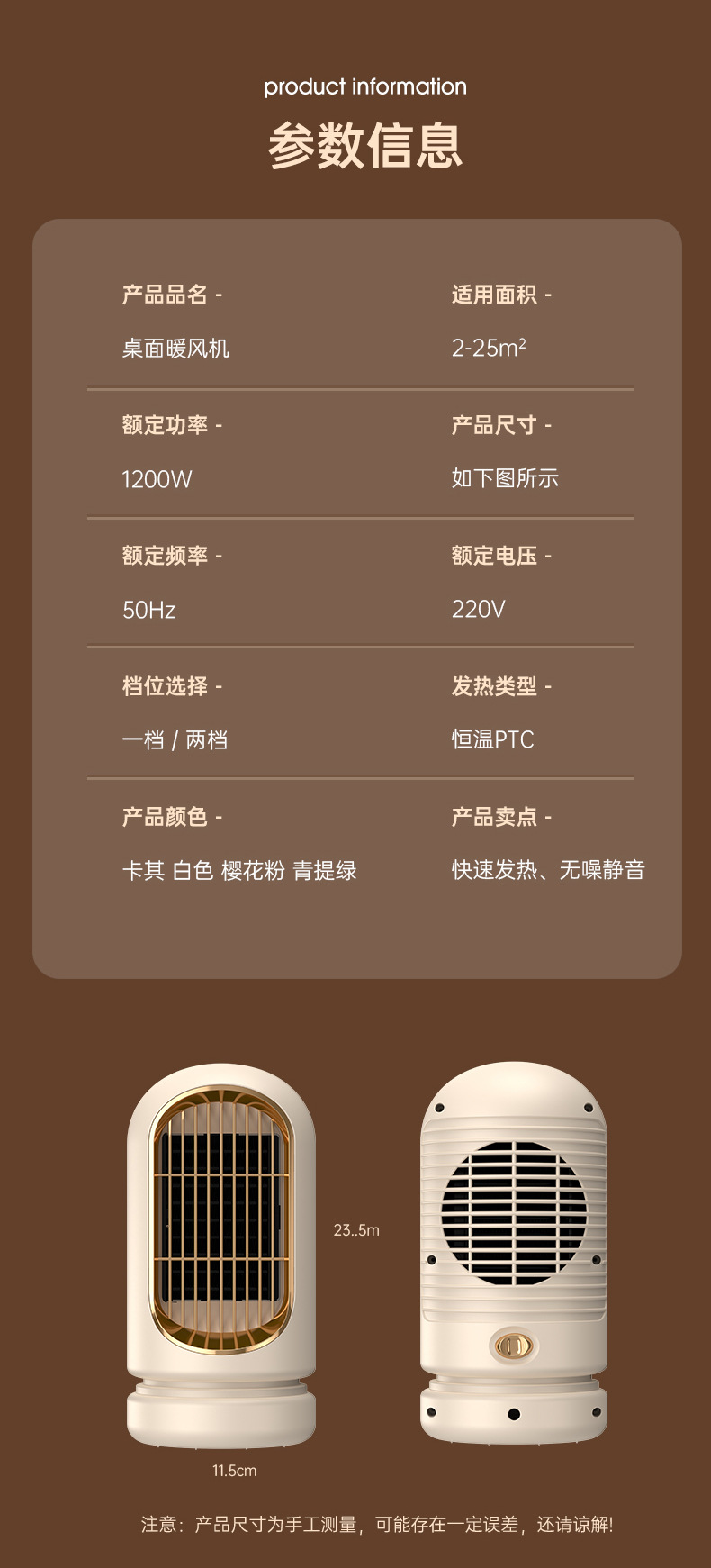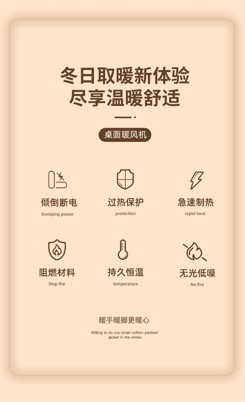 2023新款速热大功率取暖器家用办公电暖器PTC陶瓷发热桌面暖风机 English | 投诉