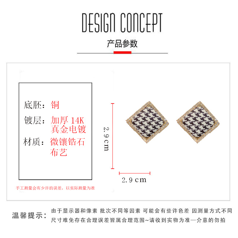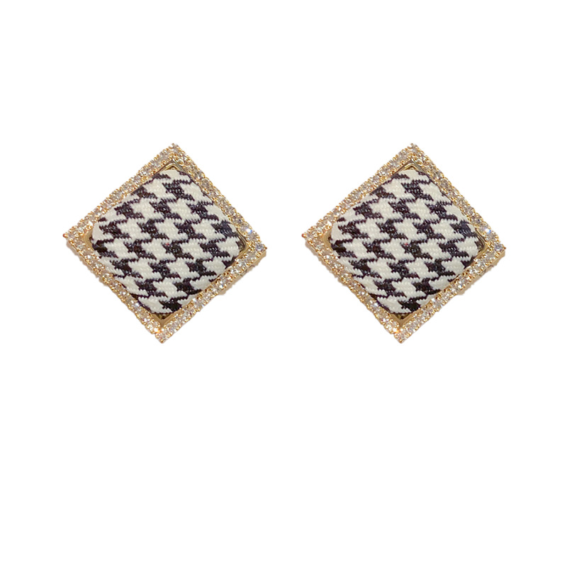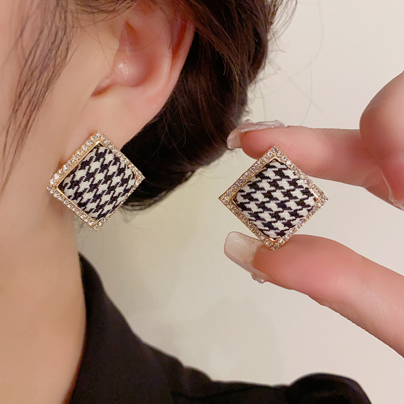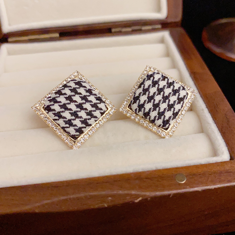 韩式气质时尚菱形千鸟格布艺耳钉东大门复古高级简约耳环 English | 投诉