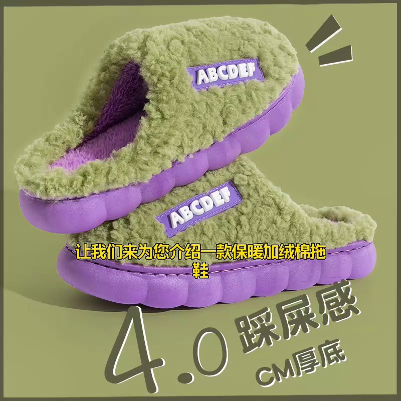 【A384毛绒字母款棉拖鞋】