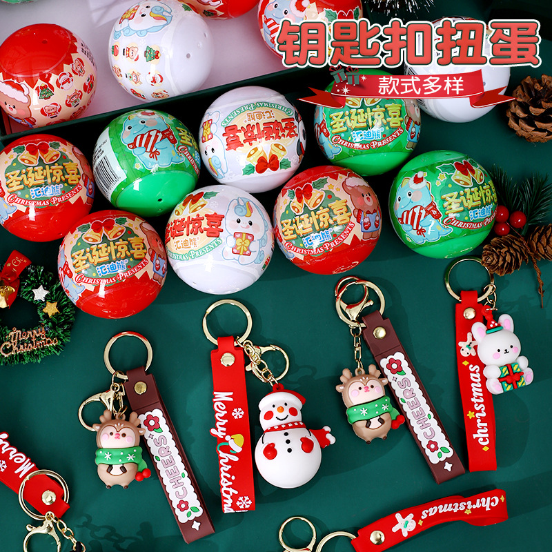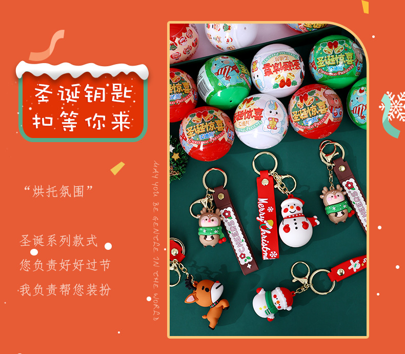 圣诞钥匙扣扭蛋球形盲蛋卡通圣诞公仔儿童礼物幼儿园活动小礼品