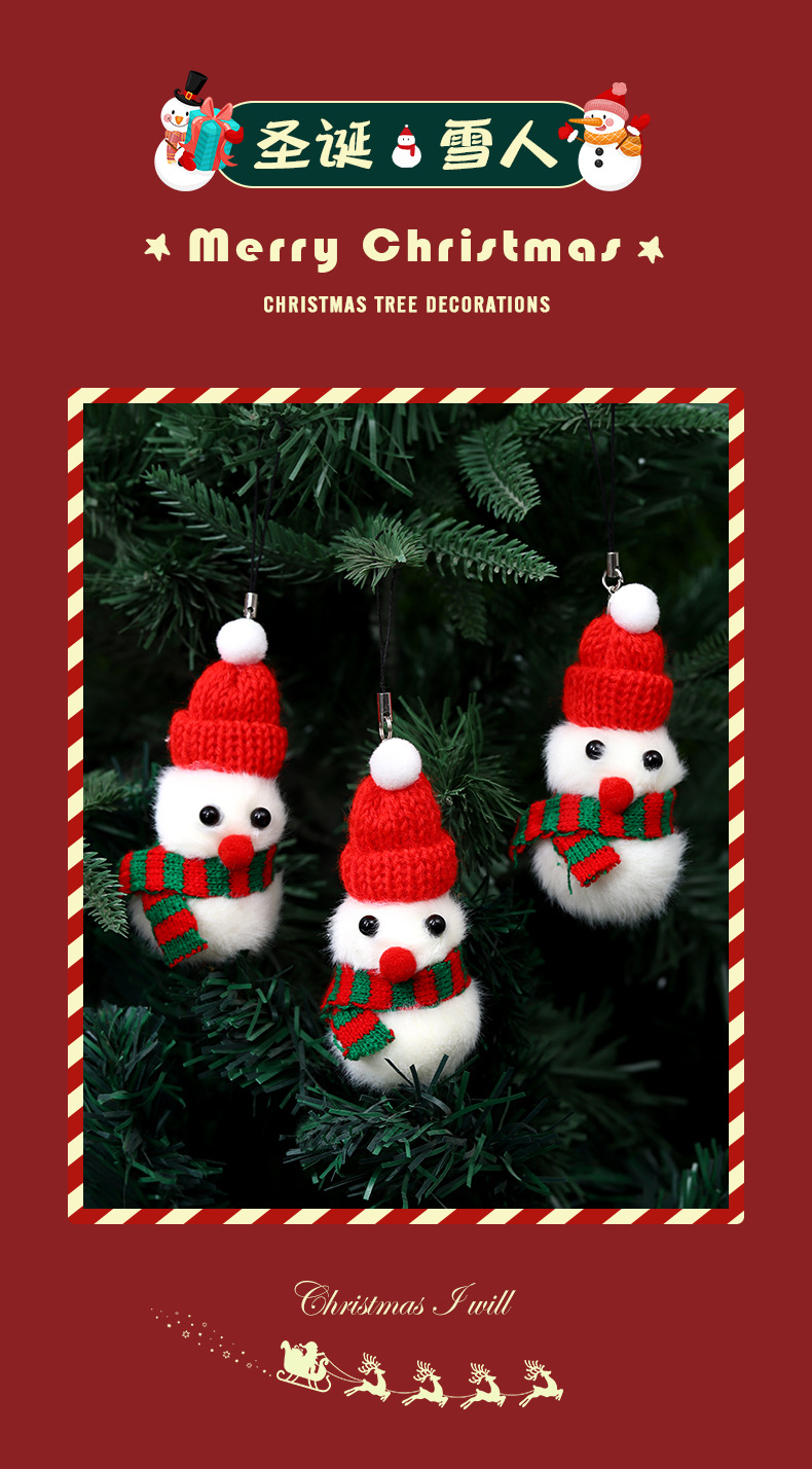 圣诞节可爱公仔雪人娃娃圣诞树装饰挂件礼物礼盒手机背包毛绒挂饰