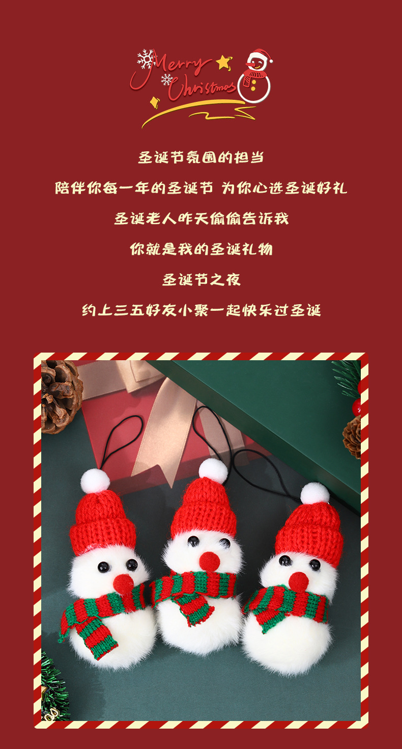 圣诞节可爱公仔雪人娃娃圣诞树装饰挂件礼物礼盒手机背包毛绒挂饰 投诉