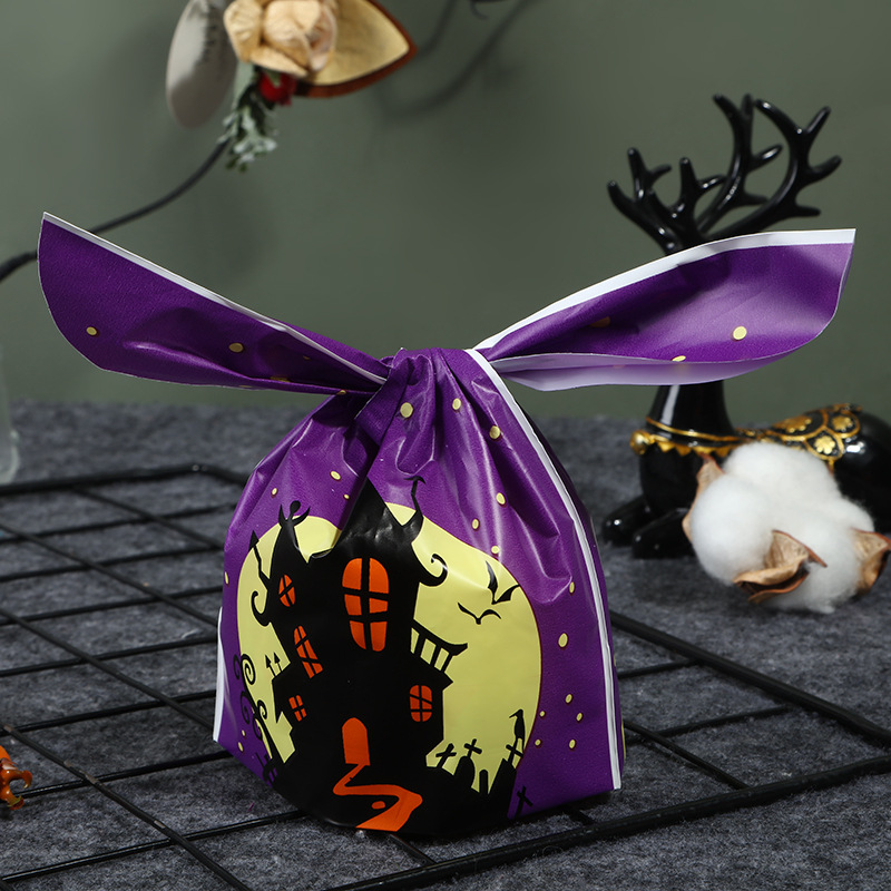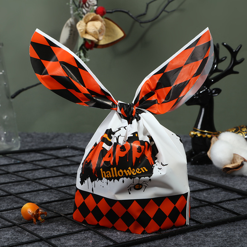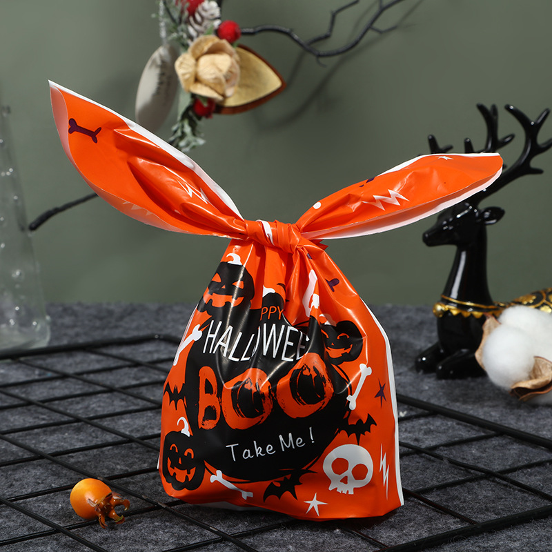 厂家直销万圣节糖果袋南瓜幽灵印花绑口袋跨境兔耳朵袋50一包