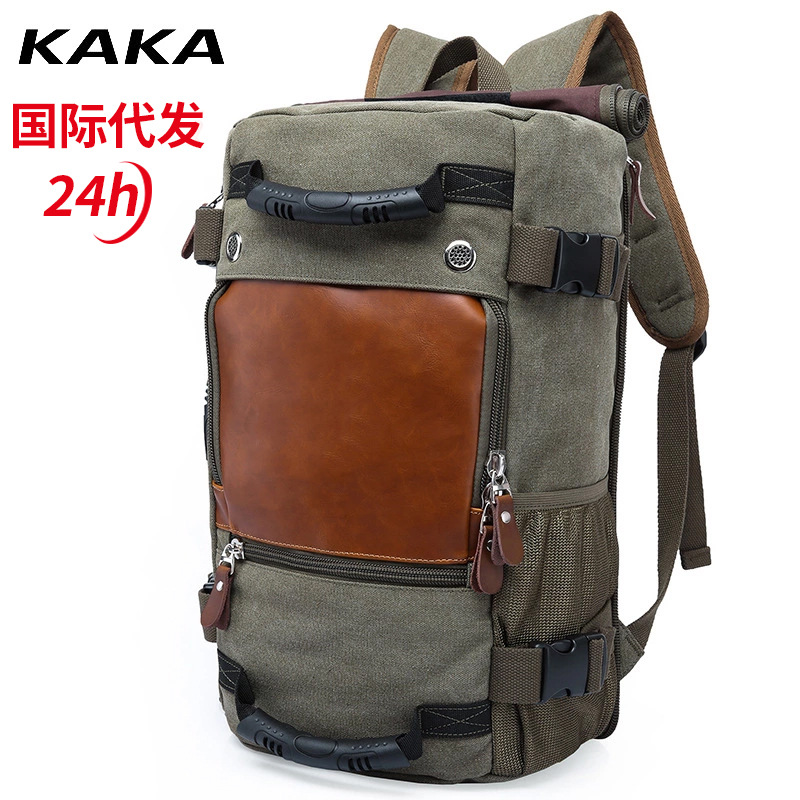 文艺复古休闲韩版大容量帆布背包男双肩包多功能旅行休闲背包