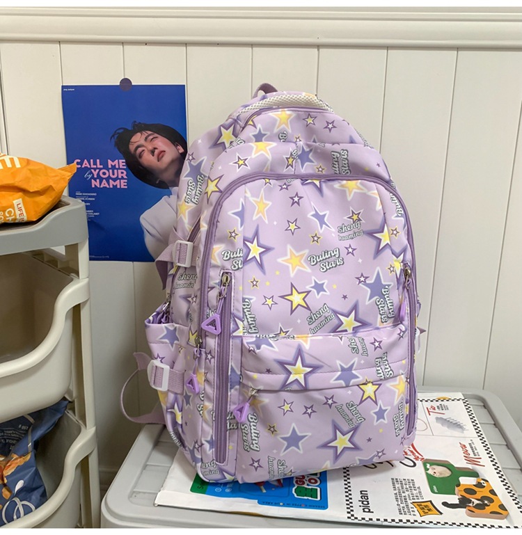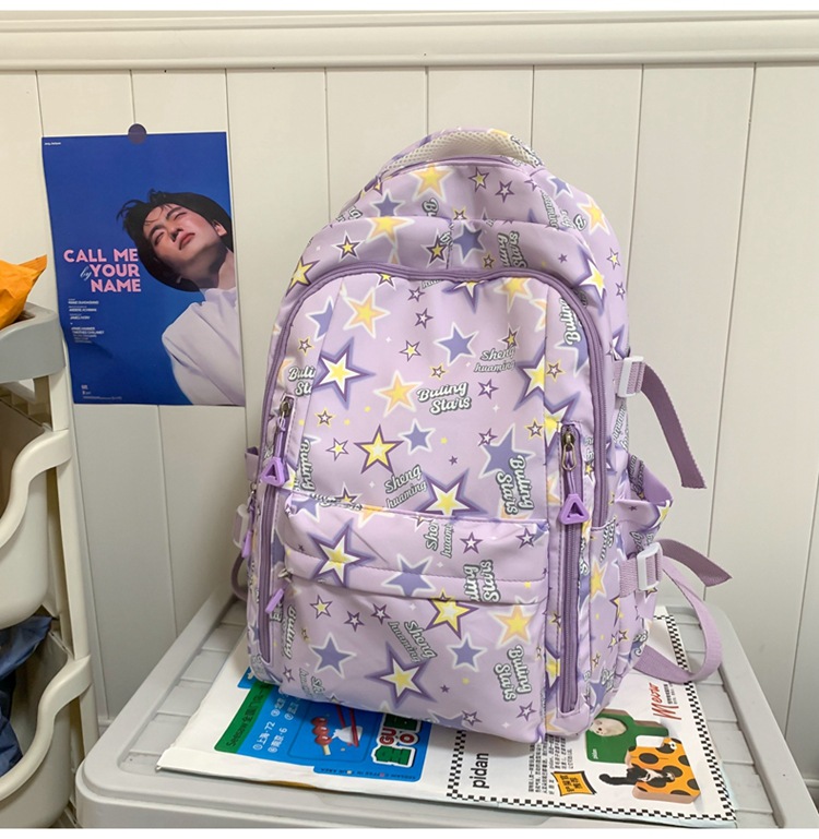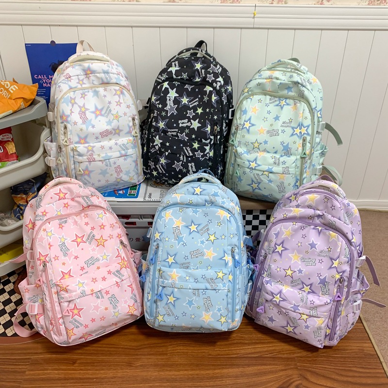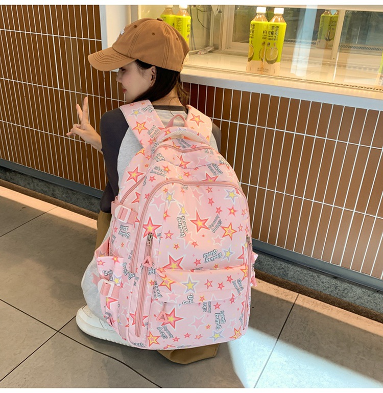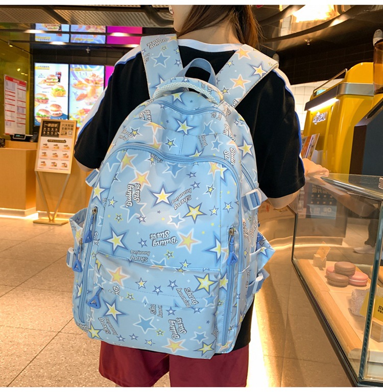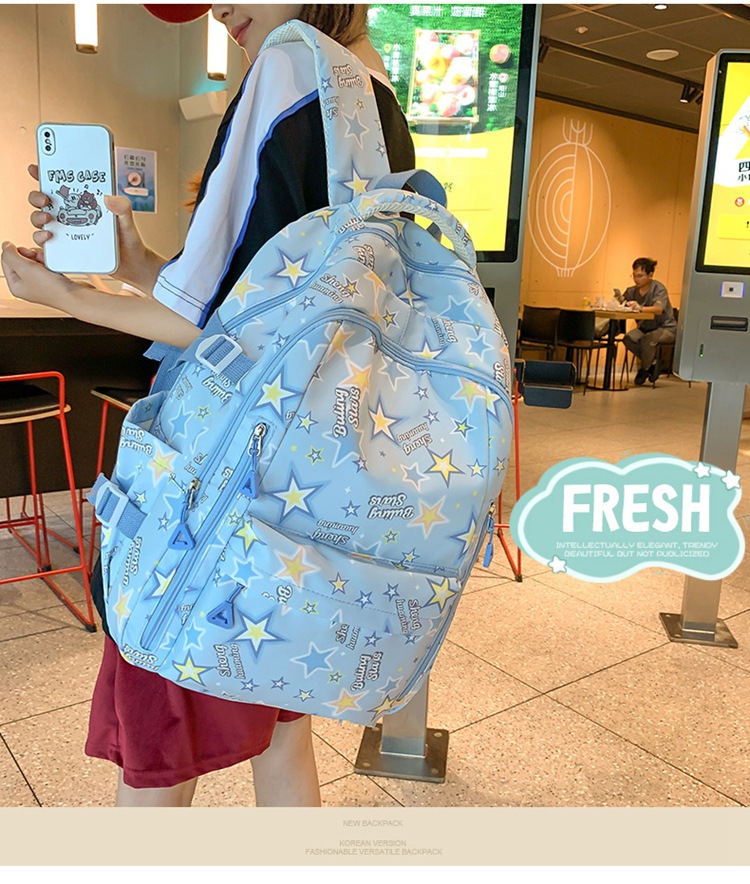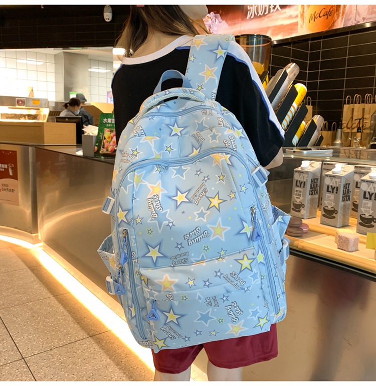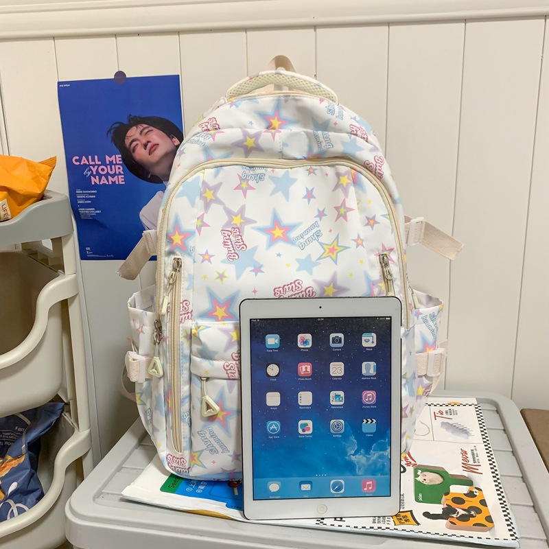 新款书包小清新可爱女ins日系卡通涂鸦初中高中学生大容量双肩包