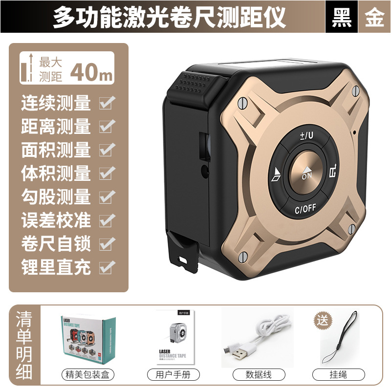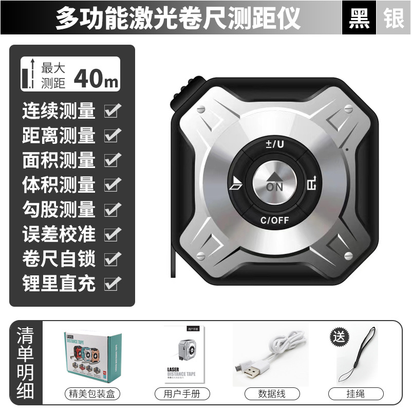 智能激光卷尺测距仪 铝合金40米红外线量房激光卷尺测量仪测距仪