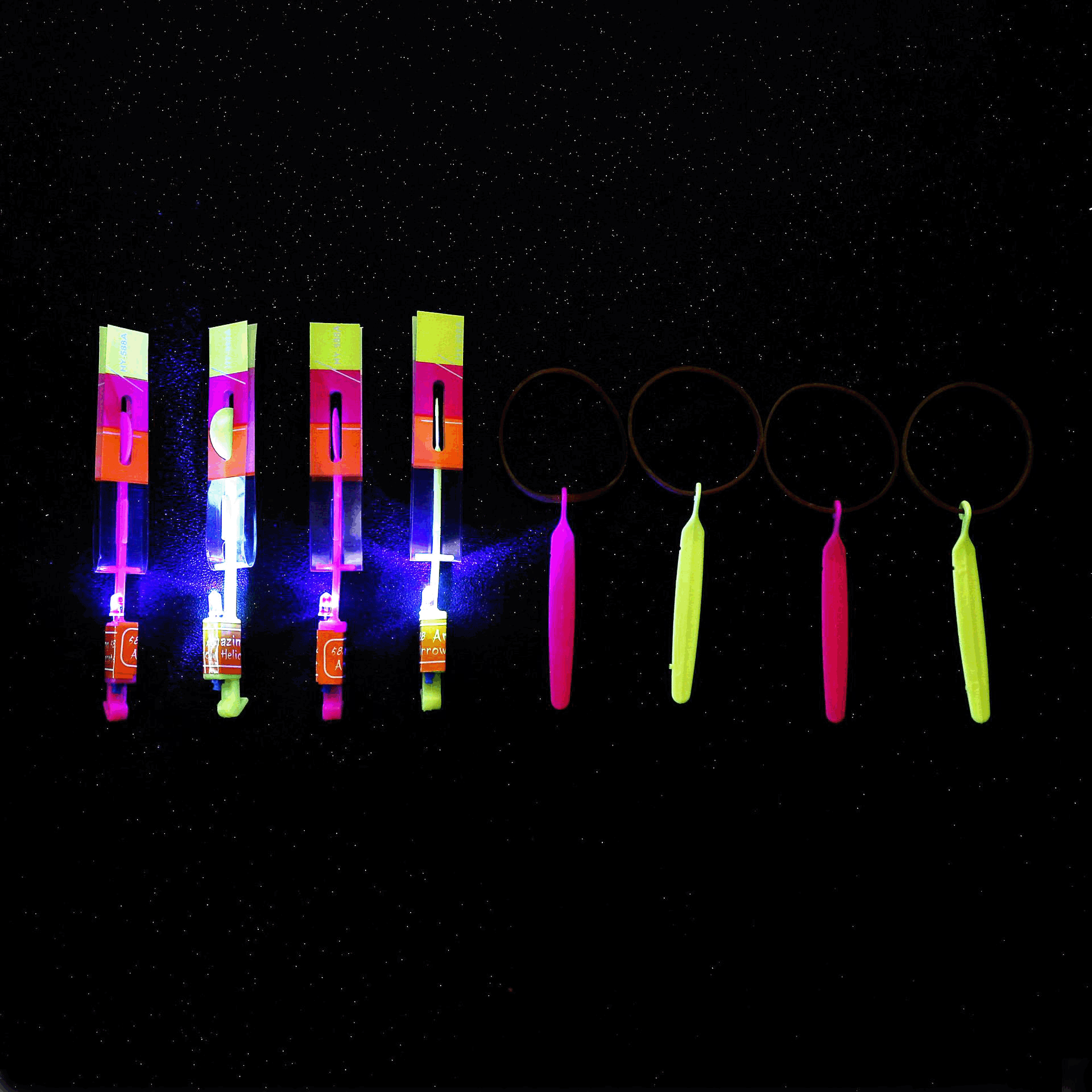 注意:飞箭产品包装为每个装一个opp袋子 然后50个装一中包 1200个装一箱,注意每包50个为相同颜色,如果购买数量少且要求颜色多样性的请记得备注! 知识普及:选项中拿两个进行举例,比如蓝灯小飞箭和双闪小飞箭,这两个产品外观及尺寸是一样的,区别在于灯光 一个是蓝灯 一个是双闪灯,别的没什么区别,剩下选项以此类推!标价为一个产品单价!